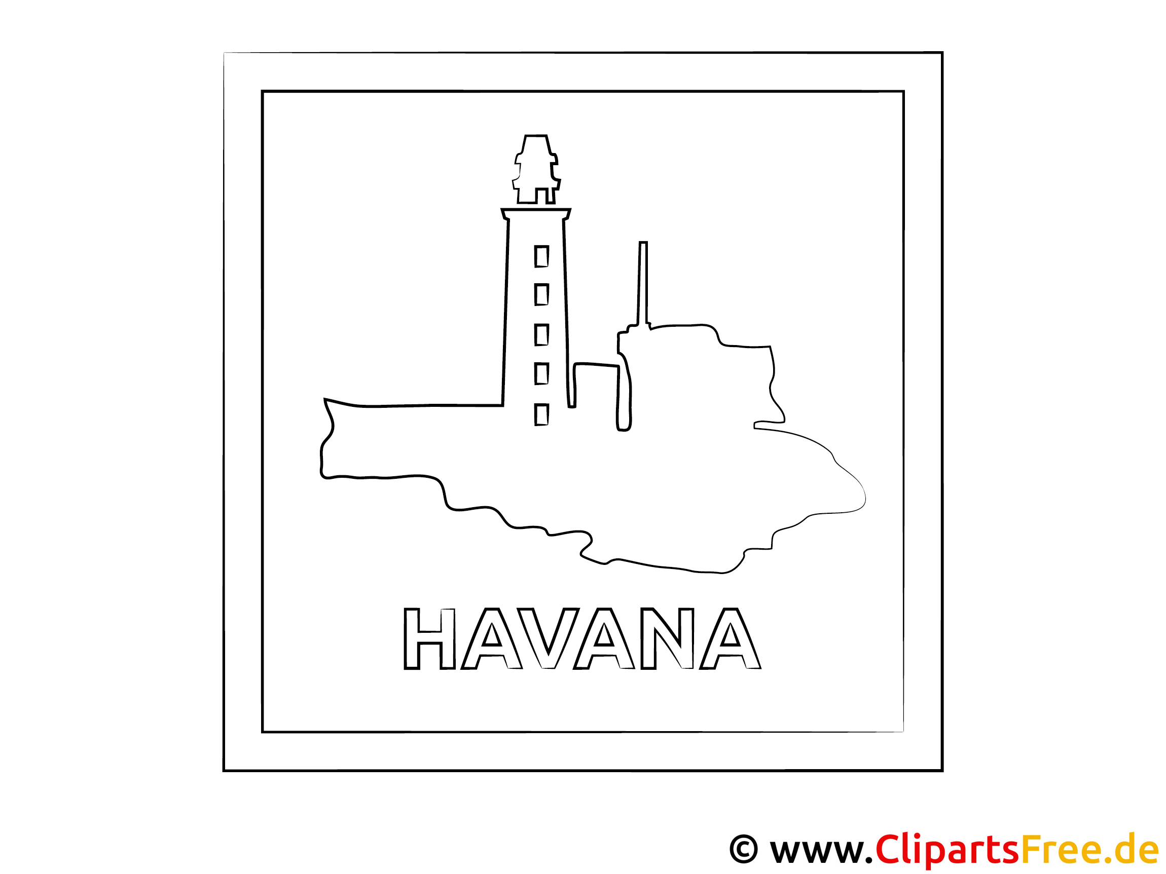 Original-Bild: Kostenloses Ausmalbild Leuchtturm Havanna als PDF Malvorlage