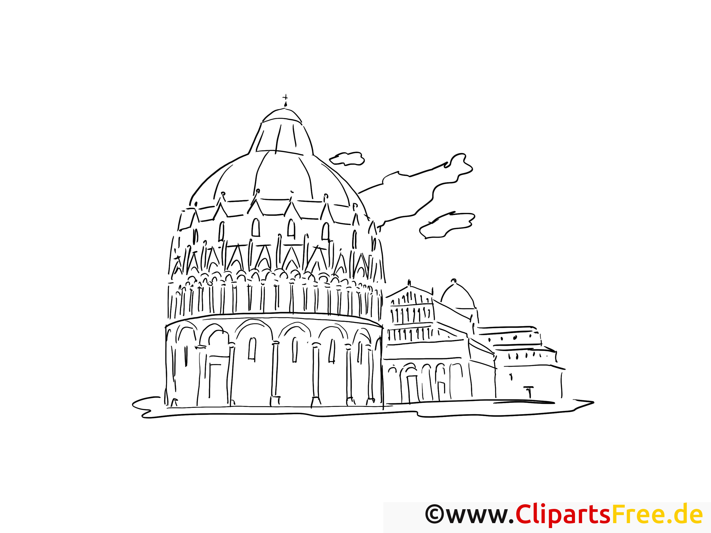 In diesem Ausmalbild siehst du eine imposante Kuppel, die an ein prächtiges Gebäude erinnert. Die geschwungenen Linien und die kleinen Fensterchen vermitteln sofort den Eindruck von einer ganz besonderen Architektur. Zudem gibt es ein paar Wolken am Himmel, die dem Bild eine gewisse Lebendigkeit verleihen. Wenn man genau hinschaut, kann man die feinen Details der Fassaden entdecken. Es ist fast so, als würde das Gebäude eine Geschichte erzählen – über alte Zeiten sicherlich, als alles noch voller Magie war.