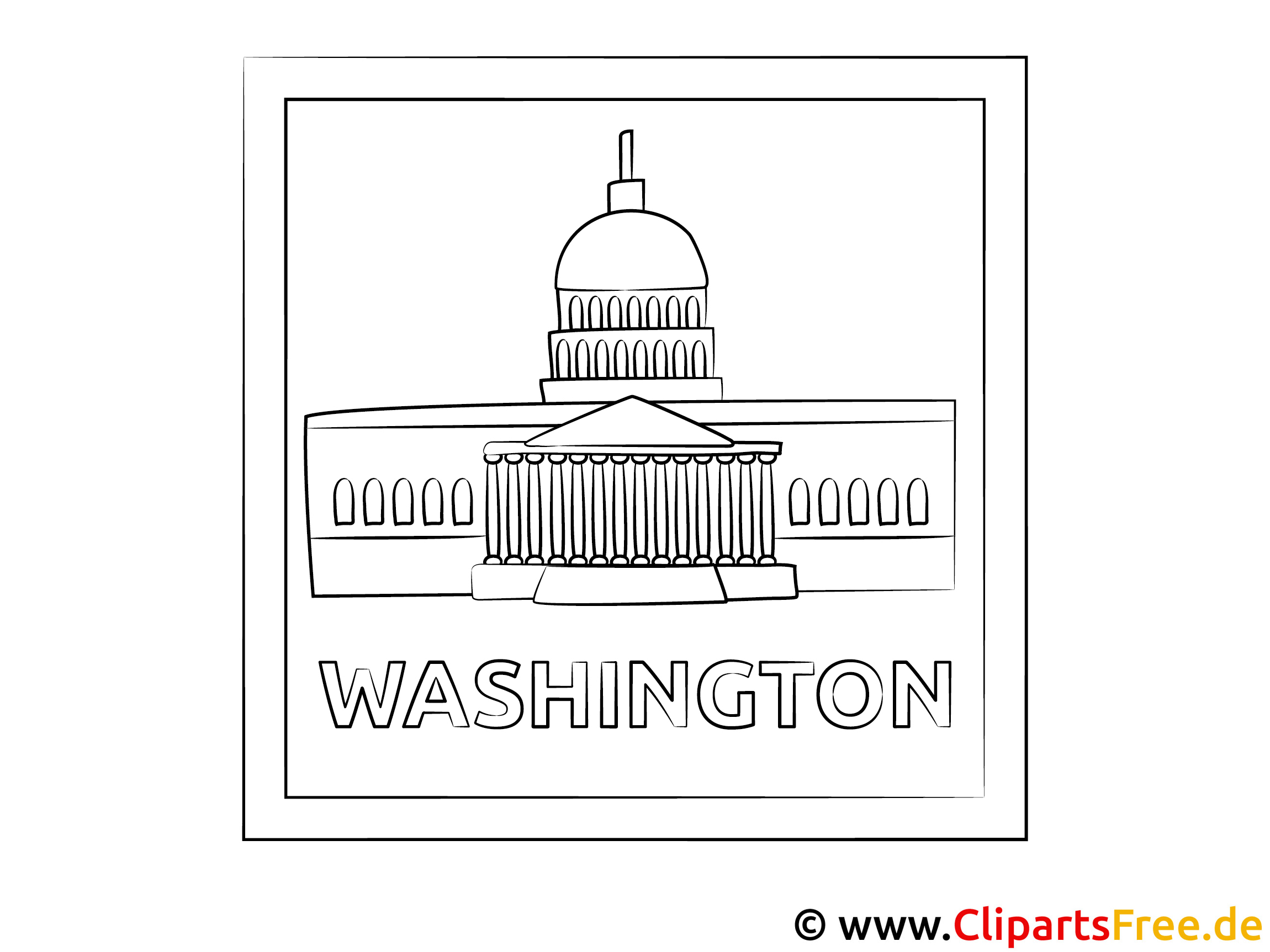 Kostenloses Ausmalbild Kapitol Washington D.C. als PDF Malvorlage