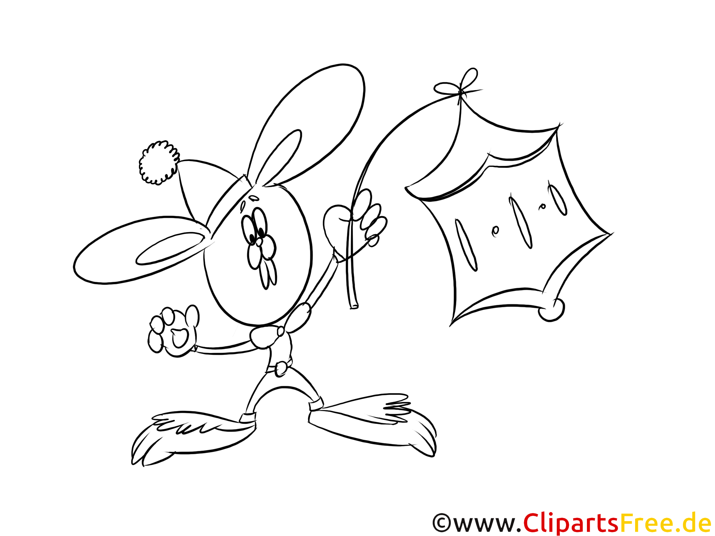 Kostenloses Ausmalbild Hase mit Regenschirm als PDF Malvorlage