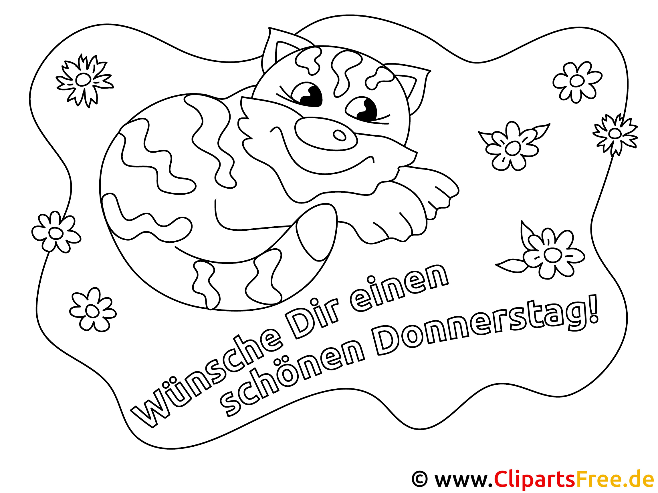 Katze Schönen Donnerstag Ausmalbilder für Kinder kostenlos ausdrucken