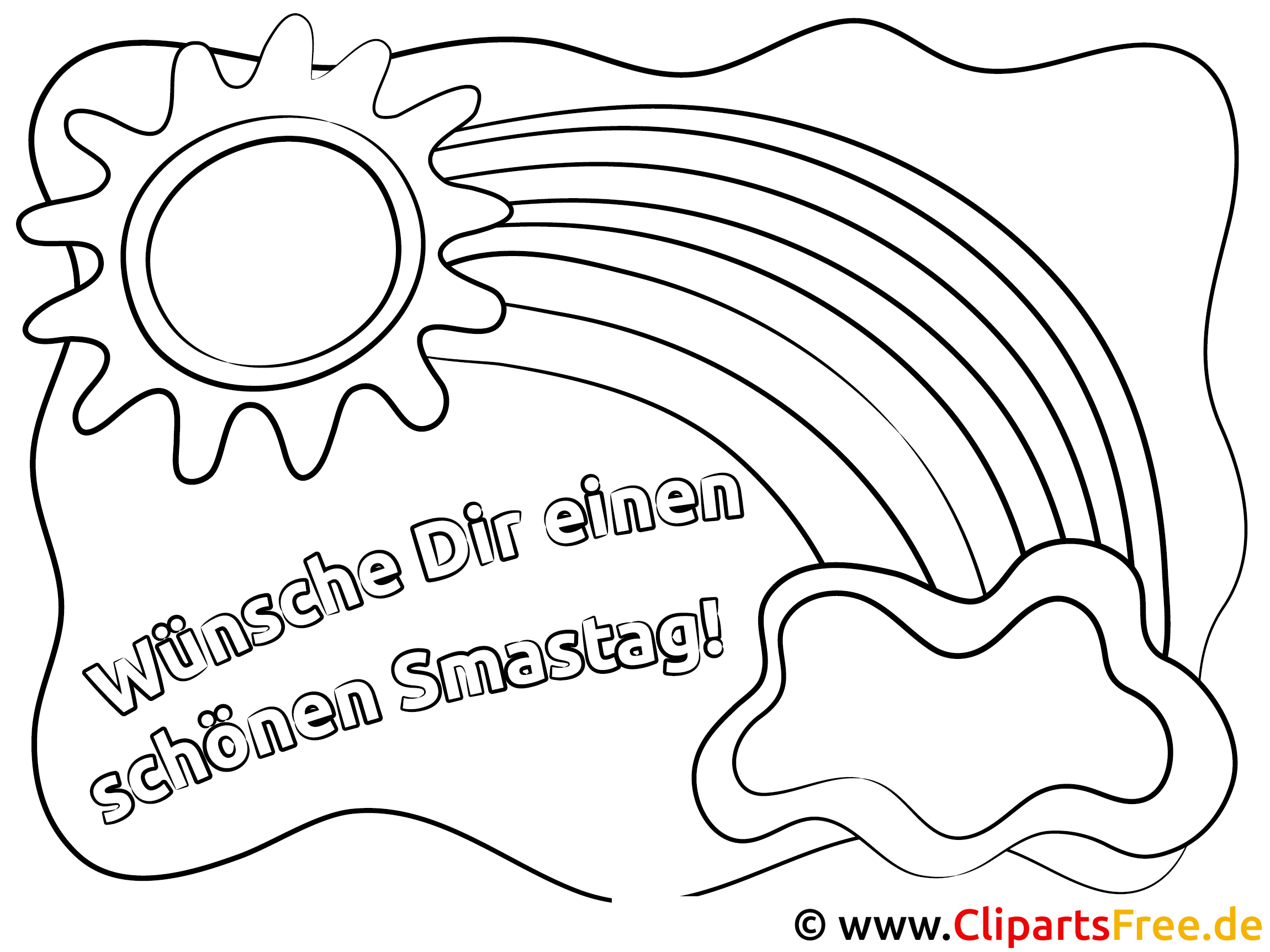 Sonne Regenbogen Schönen Samstag Ausmalbilder für Kinder kostenlos ausdrucken