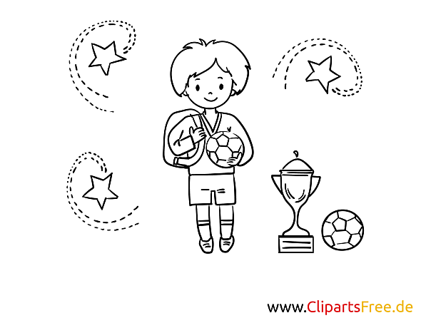 Hier haben wir ein ganz tolles Motiv, das besonders für kleine Fußballfans gedacht ist! Es zeigt einen fröhlichen Jungen, der stolz einen Fußball in der Hand hält – oh, und er hat auch einen Fußballschläger auf dem Rücken! Darüber hinaus steht neben ihm ein schöner Pokal. Das Ganze wird noch von ein paar hübschen Sternen umrahmt. Man sieht quasi, wie der Junge strahlt – der Erfolg ist greifbar! Mit einem Bild zum Ausmalen wie diesem kommen die besten Erinnerungen an spannende Spiele und tolle Momente aufs Papier.