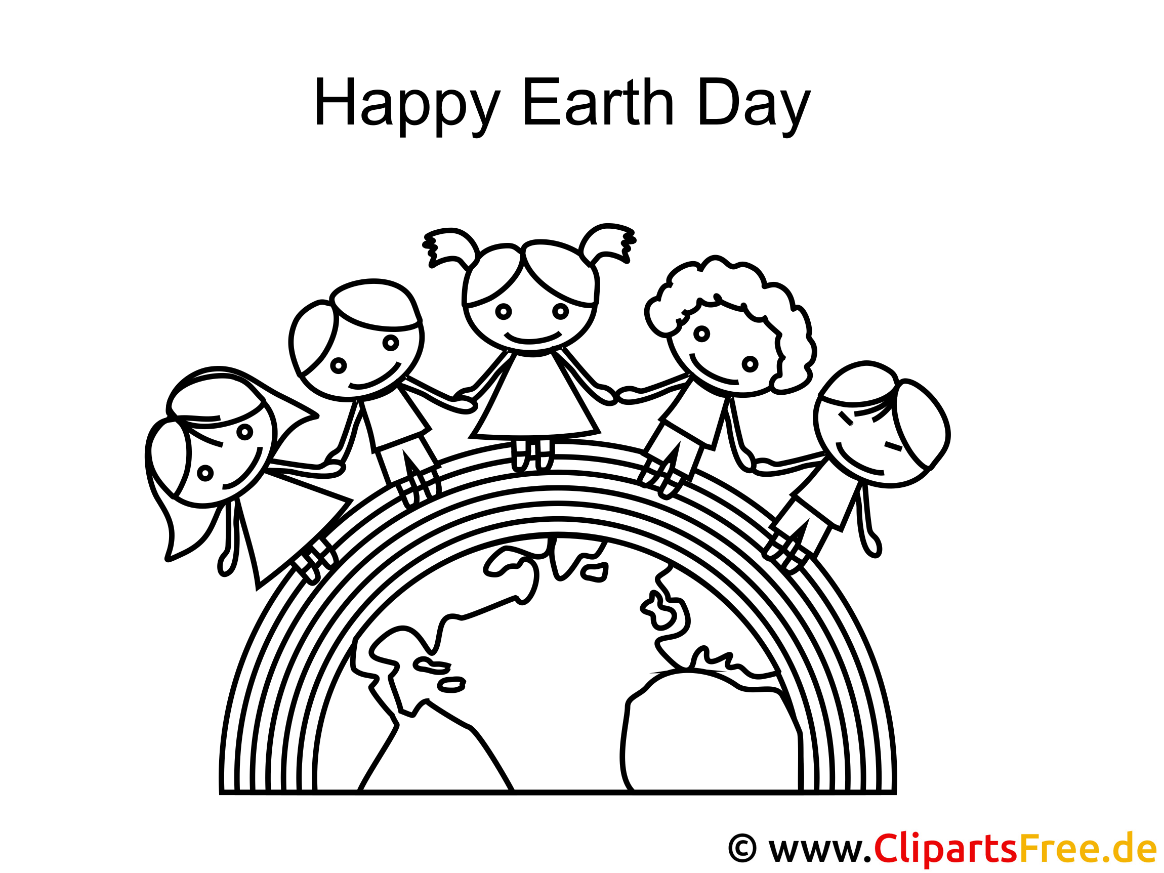 Das Ausmalbild zeigt eine fröhliche Gruppe von fünf Kindern, die sich an den Händen halten und über einen bunten Regenbogen stehen. Sie blicken lächelnd in die Richtung des Betrachters. Auf dem Regenbogen, ja, da ist sogar eine kleine Karte der Erde abgebildet. Die Kinder sind in typischen Kleidung, was das Bild besonders niedlich macht. Ehrlich gesagt, eine super Möglichkeit, um Kinder für den „Earth Day“ zu sensibilisieren – und das ganz spielerisch!