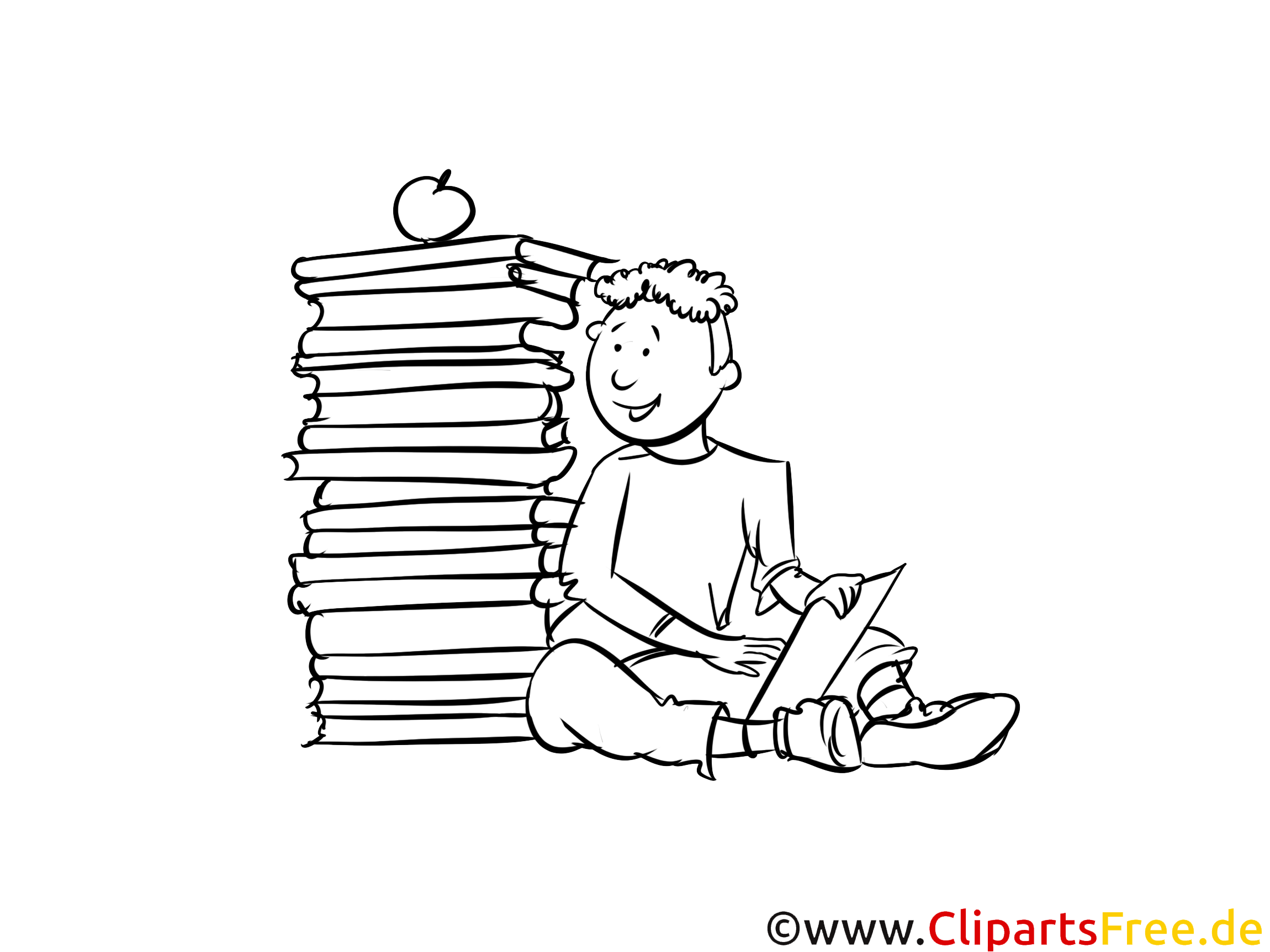 Kostenloses Ausmalbild eines Jungen mit Bücherstapel im PDF
