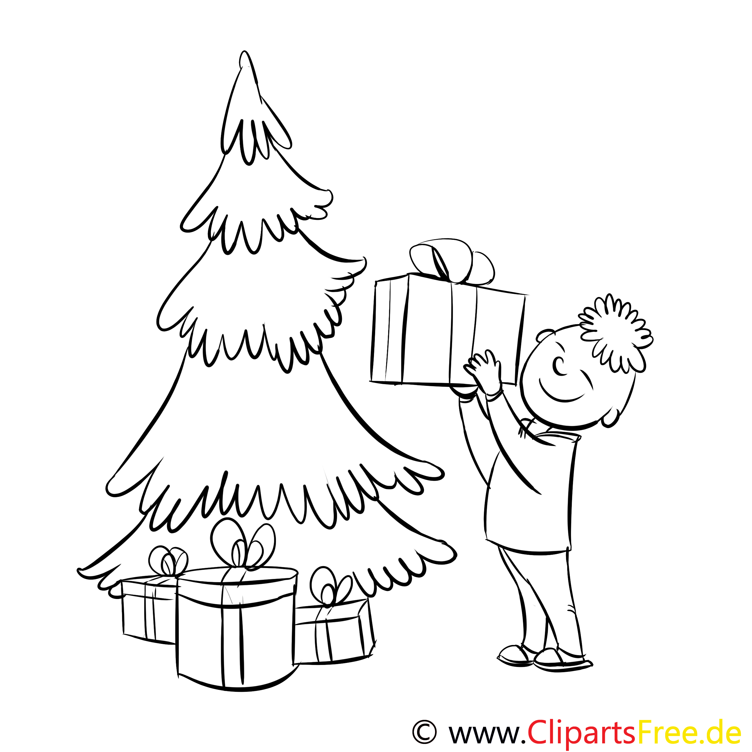 Kostenloses Ausmalbild Weihnachtsbaum und Junge als Malvorlage PDF