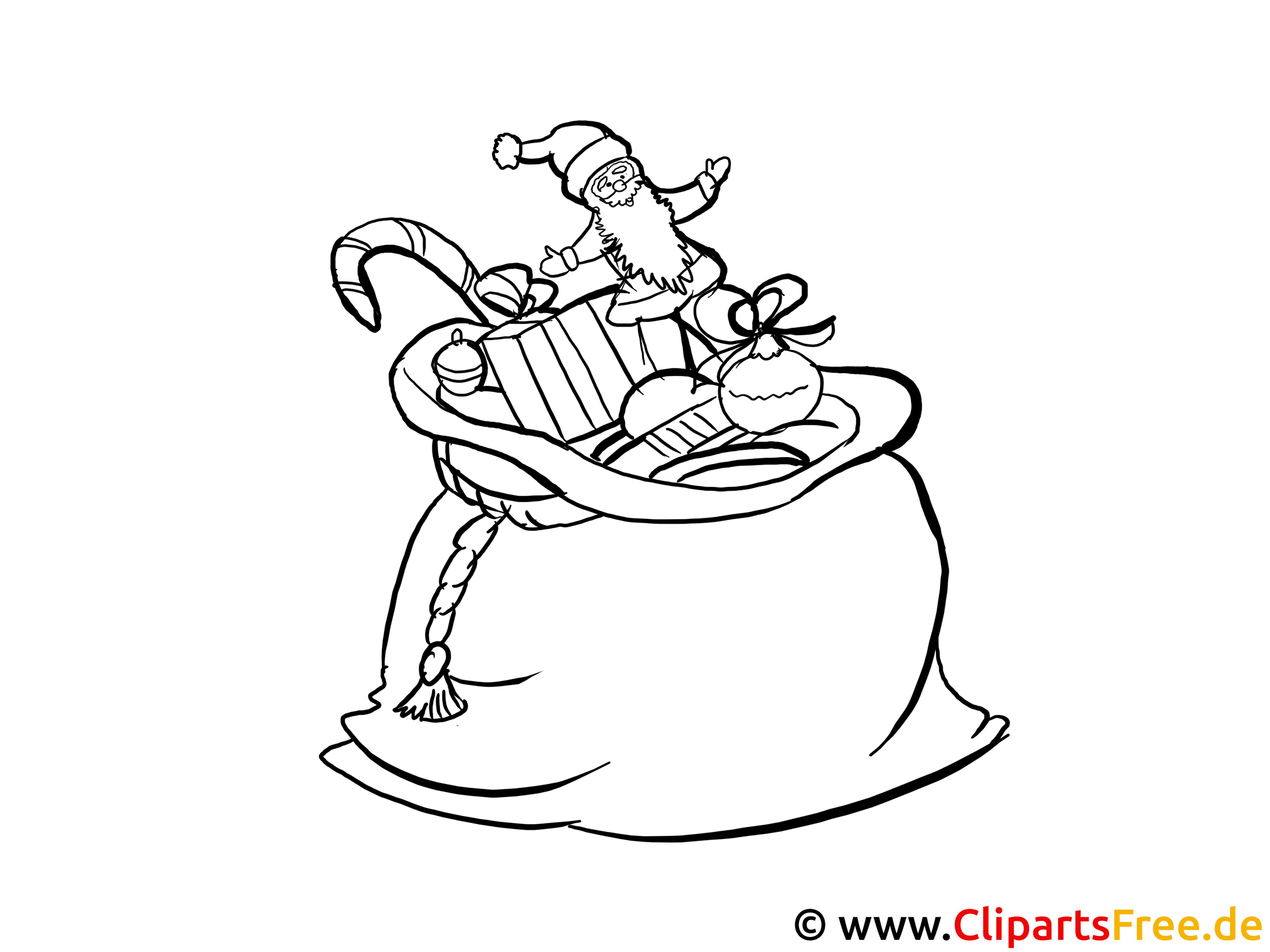 Original-Bild: Kostenloses Ausmalbild Weihnachtsmann und Geschenke als PDF