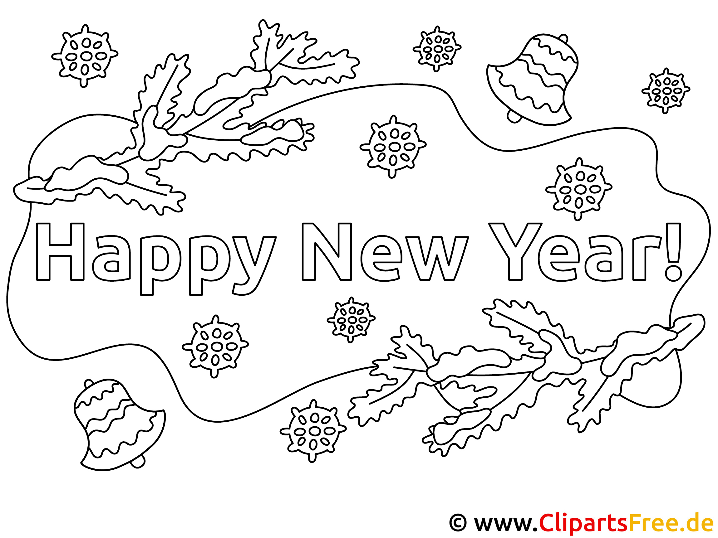 Diese tolle Malvorlage zeigt eine einladende, fröhliche Szene zum Neujahrsfest. Im Zentrum steht der Schriftzug "Happy New Year!", umrahmt von lecker aussehenden Feiertagsglocken und hübschen Wintermotiven wie Tannenzweigen und Schneeflocken. Das Ganze ist verspielt gestaltet und bringt sofort gute Laune. Die Glocken läuten, und die Dekoration sieht geradezu einladend aus. also, Man hat direkt Lust, die Farben auszuwählen und aus einer einfachen Zeichnung ein richtiges Kunstwerk zu machen!