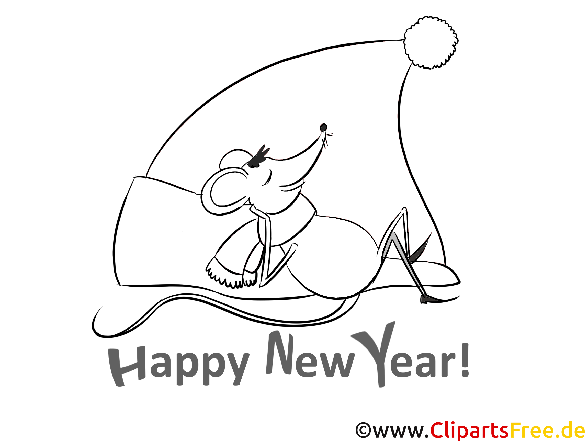 Ein ziemlich süßes Bild, oder? Da haben wir eine kleine Maus, die ganz entspannt unter einem riesigen, flauschigen Hut liegt – ehrlich gesagt, irgendwie gemütlich! Es sieht so aus, als würde sie gleich ins Traumland abtauchen. Um diese Maus herum prangt fröhlich der Schriftzug "Happy New Year!" und das lässt sofort gute Laune aufkommen. Die ganze Szene vermittelt den Eindruck von Freude und Feiern, und das macht das Bild perfekt für den Jahreswechsel. Kinder können viel Spaß daran haben, die Maus und den Hut bunt auszumalen und ihrer Kreativität freien Lauf zu lassen.