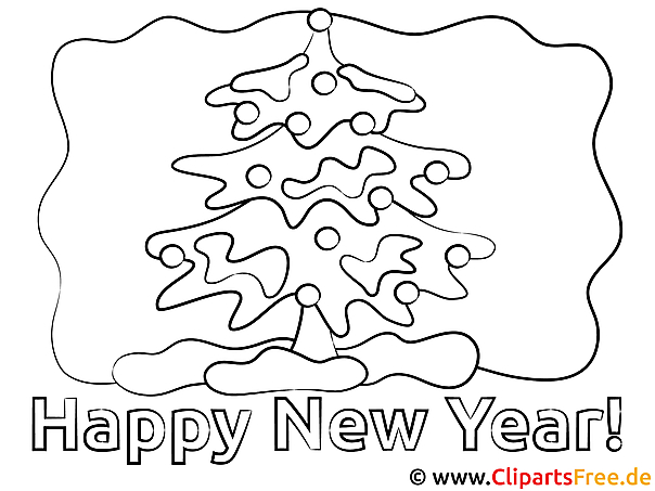 Das Ausmalbild zeigt eine fröhliche, festliche Szenerie. Im Mittelpunkt steht ein hübscher Weihnachtsbaum, der mit bunten Kugeln geschmückt ist. Die Zweige des Baumes wachsen auf eine verspielte Weise, fast so, als würden sie zum Himmel streben. Ganz oben auf dem Baum befindet sich ein toller Stern, der richtig strahlt! Um den Baum herum sind kleine, flauschige Schneeflocken verteilt, die sozusagen die winterliche Atmosphäre unterstreichen. Am unteren Rand des Bildes steht in großen, klaren Buchstaben: „Happy New Year!“. Das Ganze ist eine einladende Malvorlage – perfekt für die festliche Zeit!