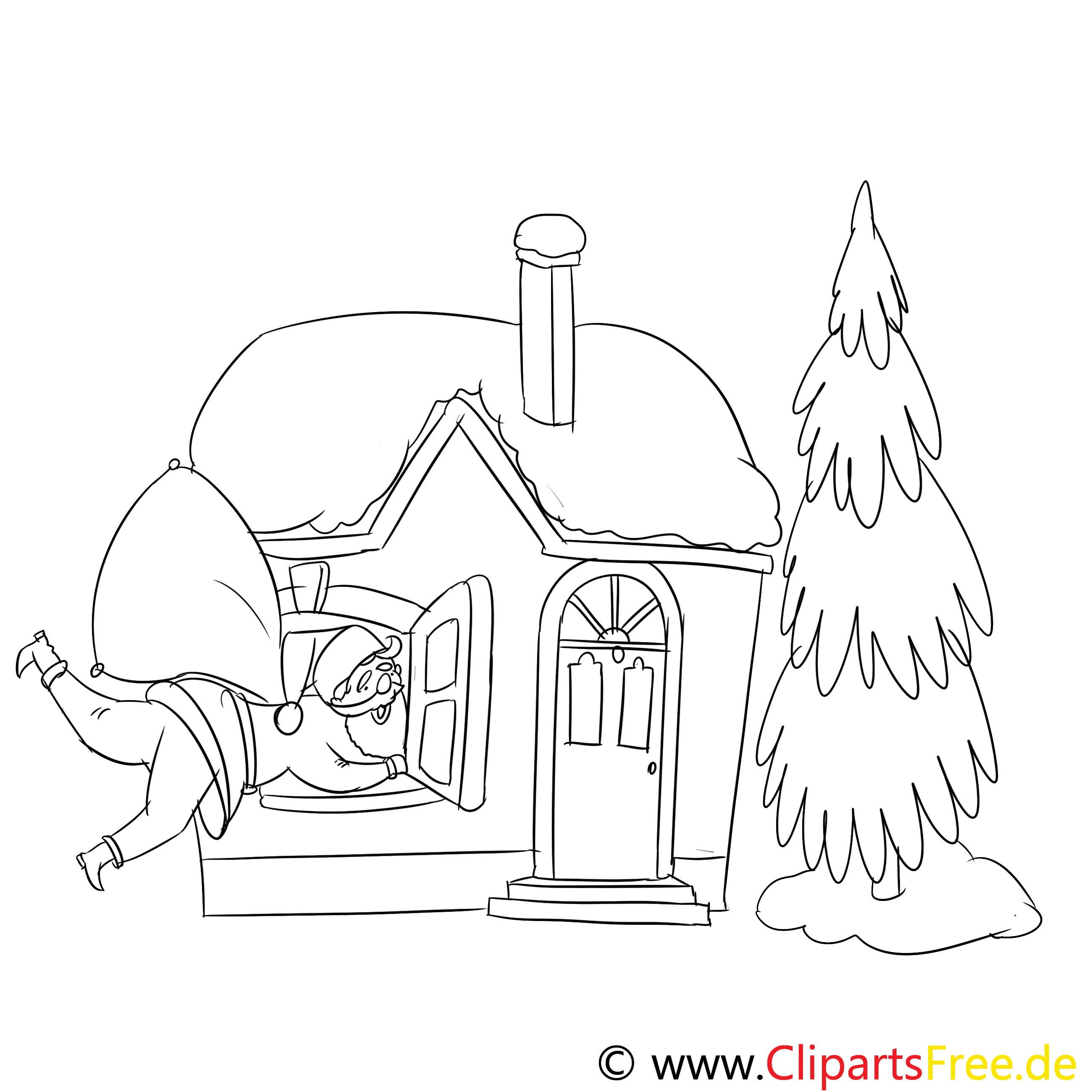 Hier haben wir ein wirklich nettes Bild! Ein fröhlicher Weihnachtsmann, der frisch aus dem Fenster eines gemütlichen Hauses schlüpft, um Geschenke zu liefern. Der Kamin ist bereit für den winterlichen Spaß, und der dicke Baum nebenan tippt leise auf die Vorfreude, die in der Luft liegt. Die Schneedecke auf dem Dach sieht echt einladend aus. Perfekt, um Kindern das Warten auf Weihnachten noch spannender zu gestalten, oder nicht?