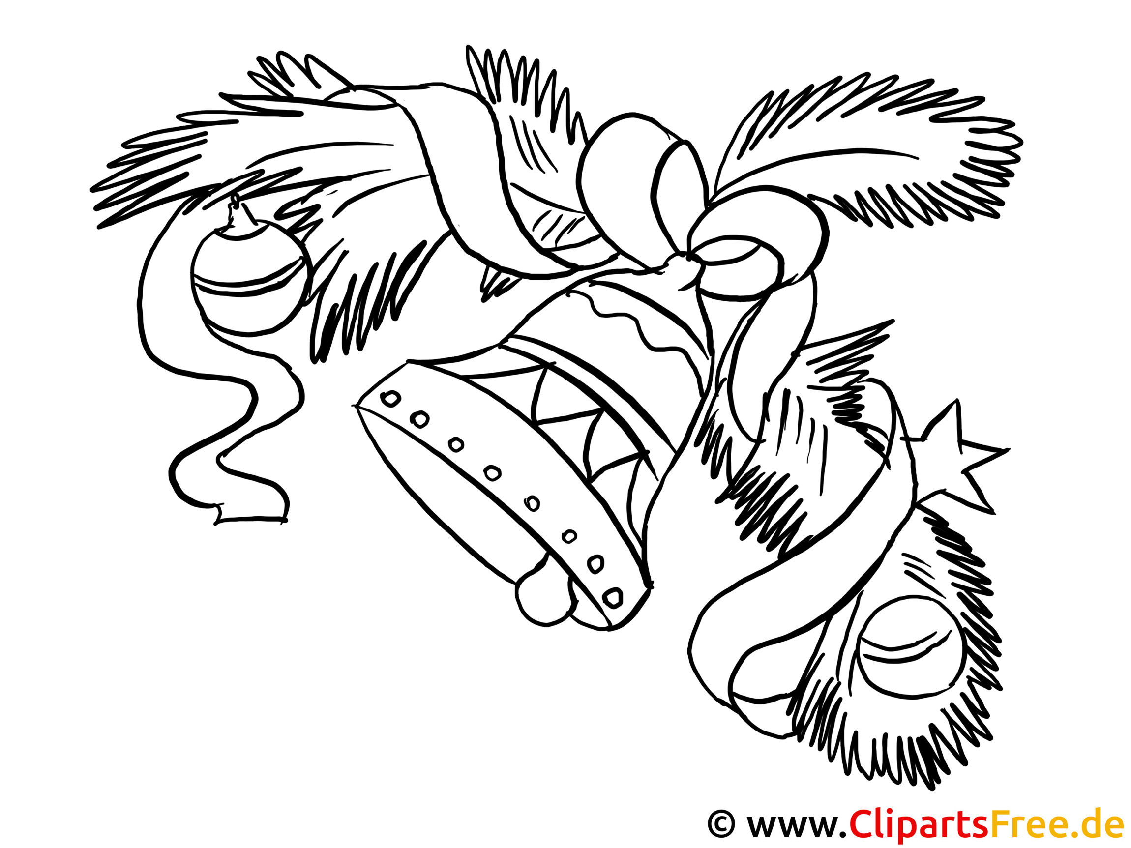 Kostenloses Ausmalbild Weihnachtsglocke als PDF Malvorlage gratis