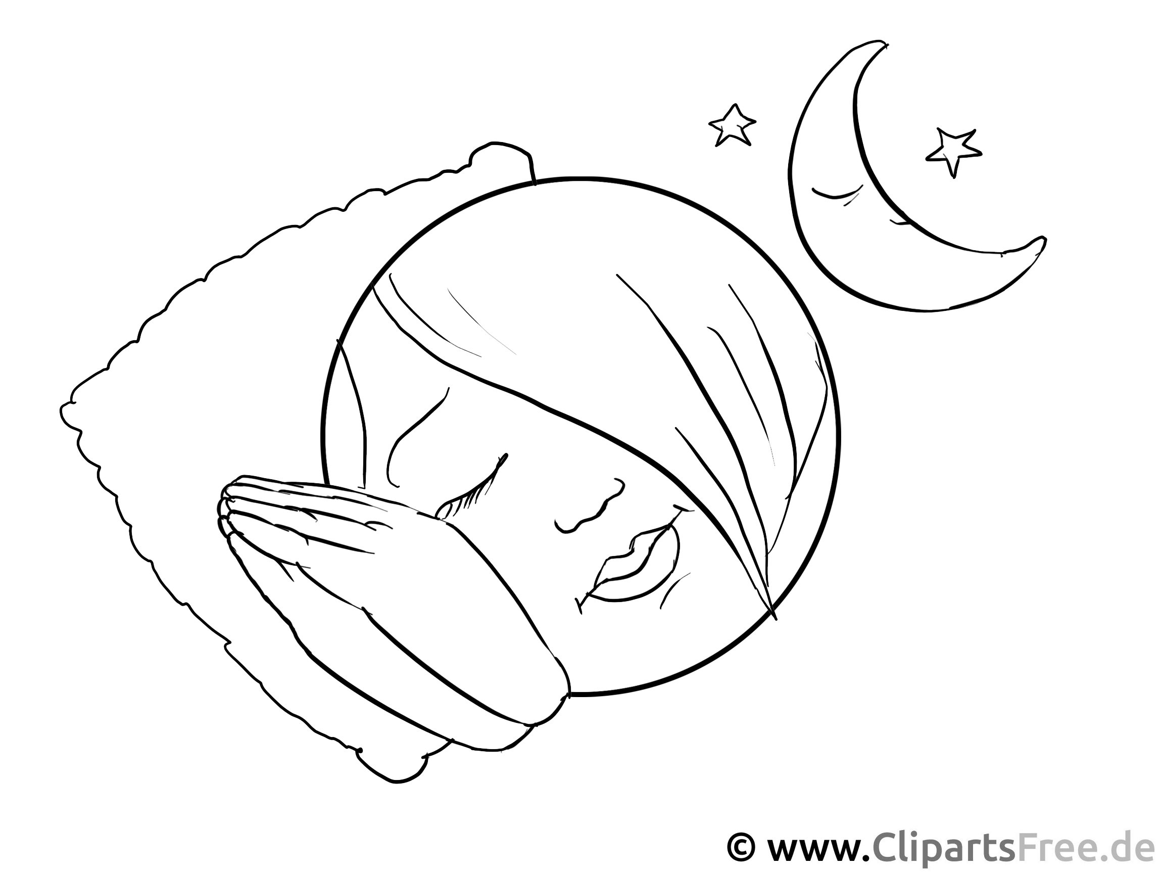 Kostenloses Ausmalbild für Kinder: Schlafendes Kind im Mondlicht PDF