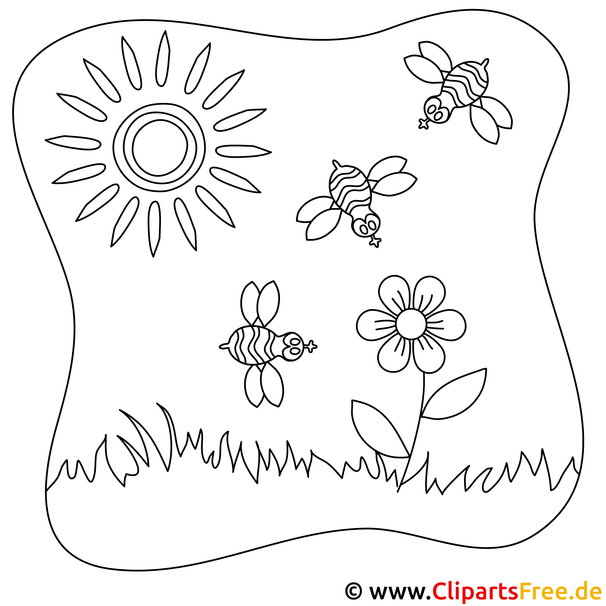Original-Bild: Kostenloses Ausmalbild mit Bienen und Blume als PDF-Malvorlage