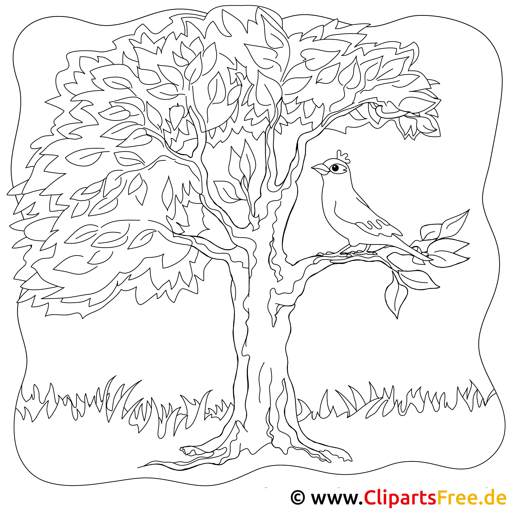 Kostenloses Ausmalbild Baum mit Vogel als PDF Malvorlage gratis