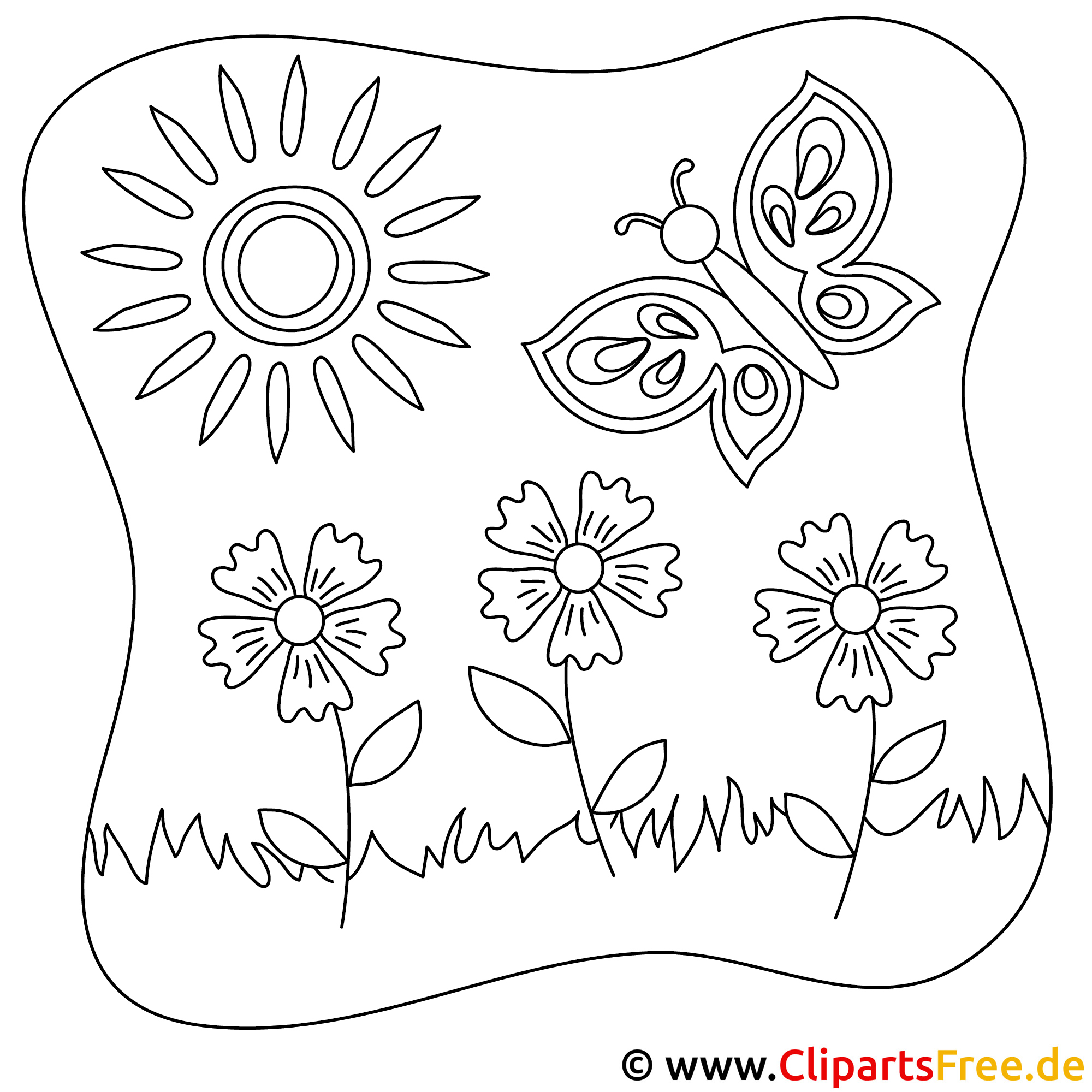 Hach, was für ein fröhliches Motiv! Diese Malvorlage zeigt einen zauberhaften Schmetterling, der über eine Wiese voller bunter Blumen und strahlend hellem Sonnenschein umherfliegt. Die Blumen stehen in einer kleinen Reihe, schön gleichmäßig, und jede hat ihre eigene, liebenswerte Form. Einfach zum Verlieben. Da tanzt der Schmetterling fröhlich, wem wird da nicht warm ums Herz?