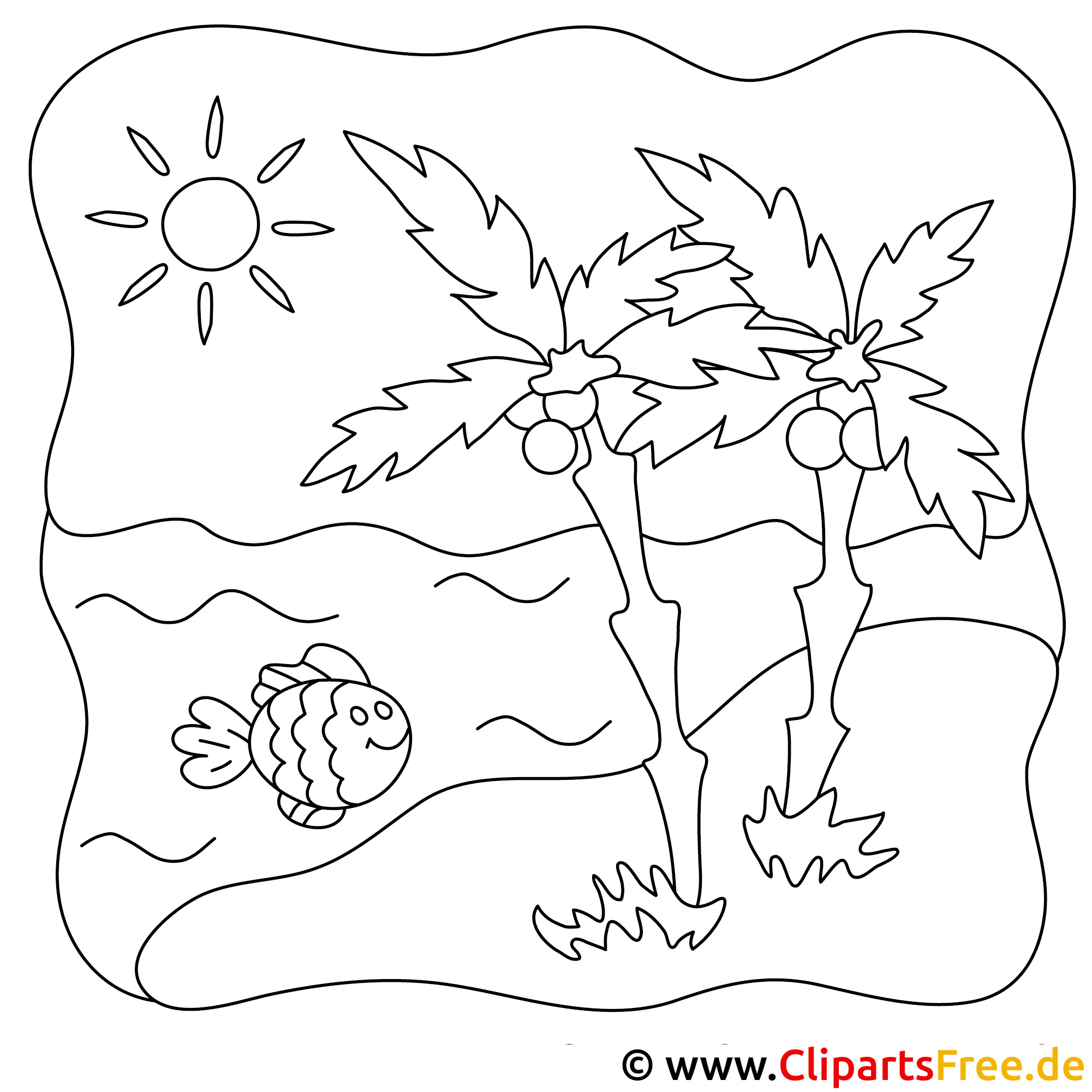 Original-Bild: Kostenloses Ausmalbild mit Palmen und Sonne im PDF-Format