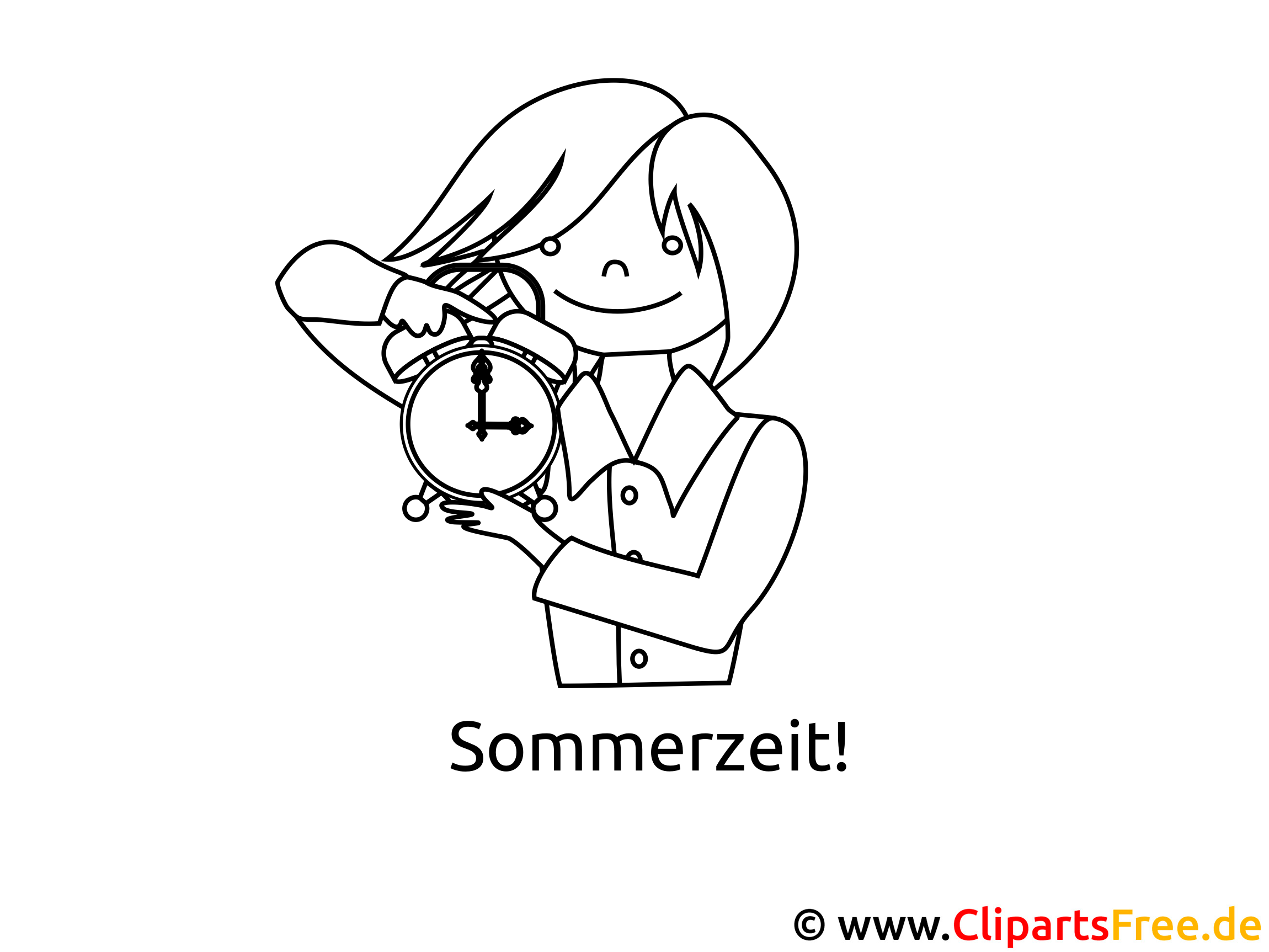 Kostenloses Ausmalbild Mädchen mit Wecker als Malvorlage im PDF