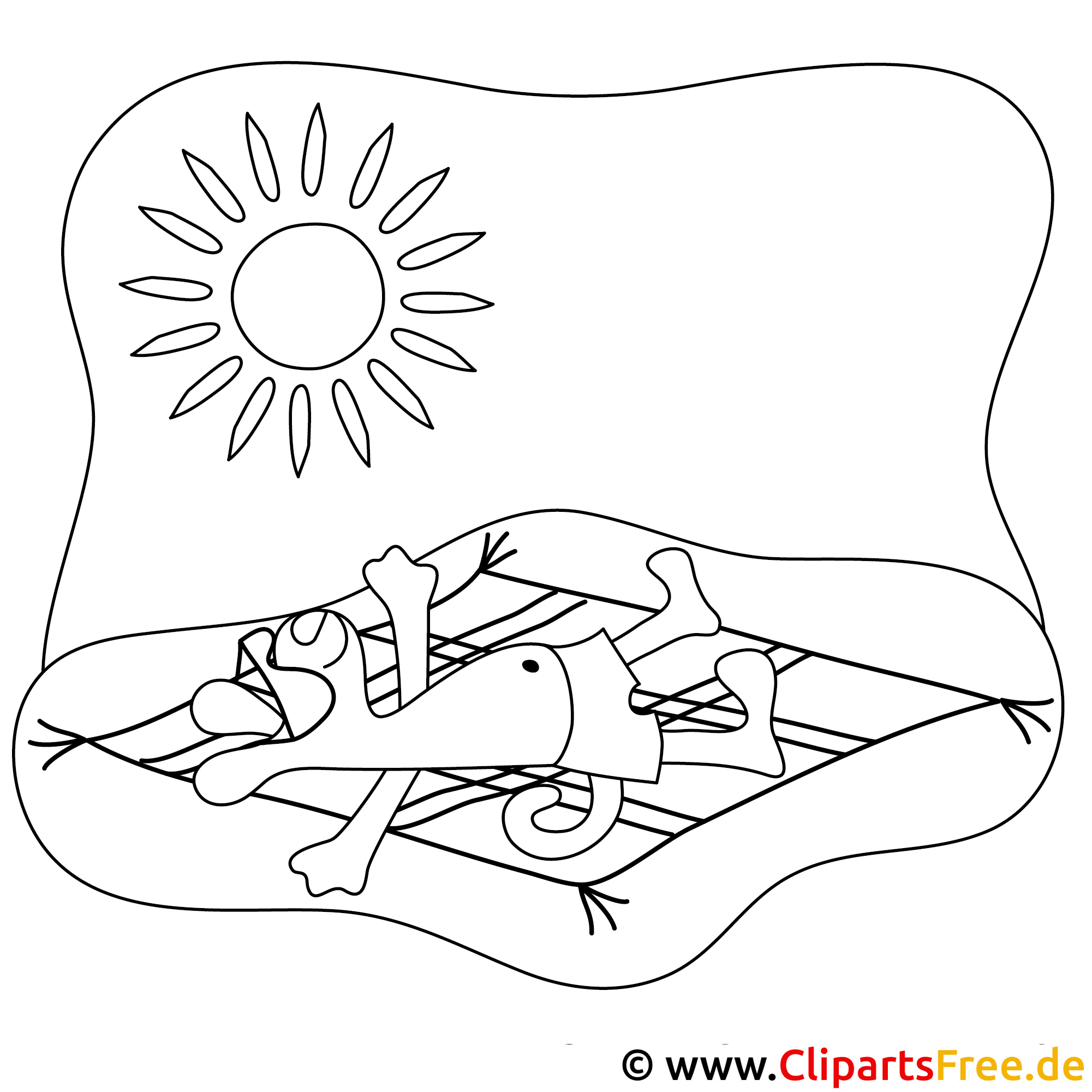 Original-Bild: Kostenloses Ausmalbild Affe auf Sonnenliege im PDF-Format