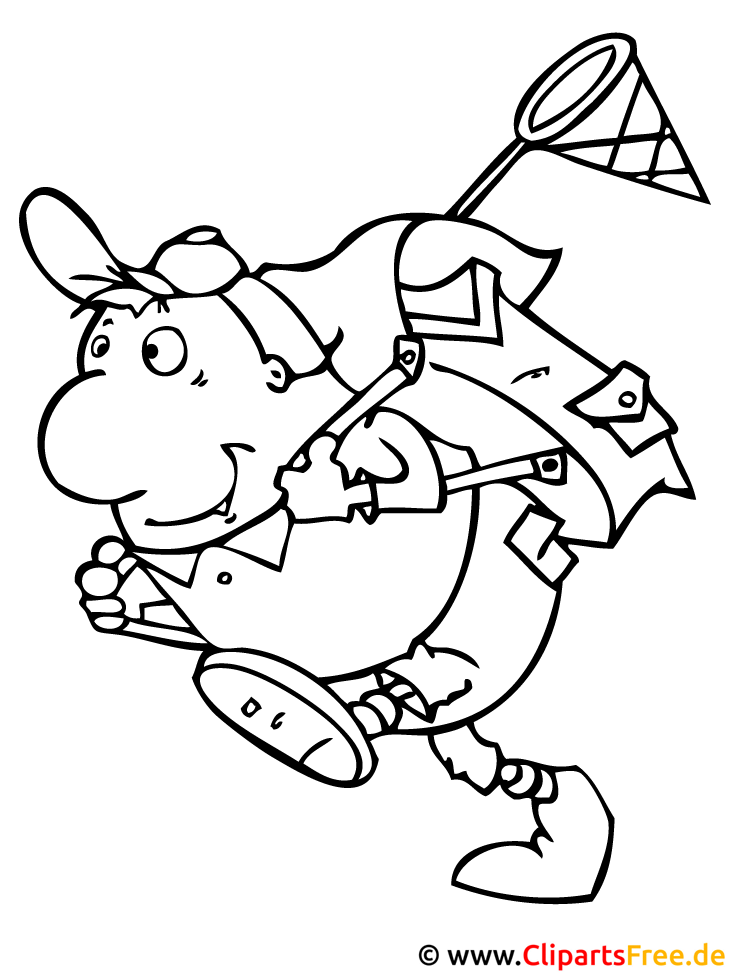 Hier sehen wir einen lustigen kleinen Jungen, der ganz euphorisch mit einem Kescher und einer großen Tasche voller Abenteuer unterwegs ist. Die Mütze sitzt schief auf seinem Kopf, und sein Gesicht strahlt pure Freude aus. Wirklich hübsch, oder? Es scheint, als ob er gleich in die Natur aufbricht, um vielleicht Schmetterlinge zu fangen oder Münzen zu suchen. Ein Bild, das zum Lachen und Ausmalen einlädt!