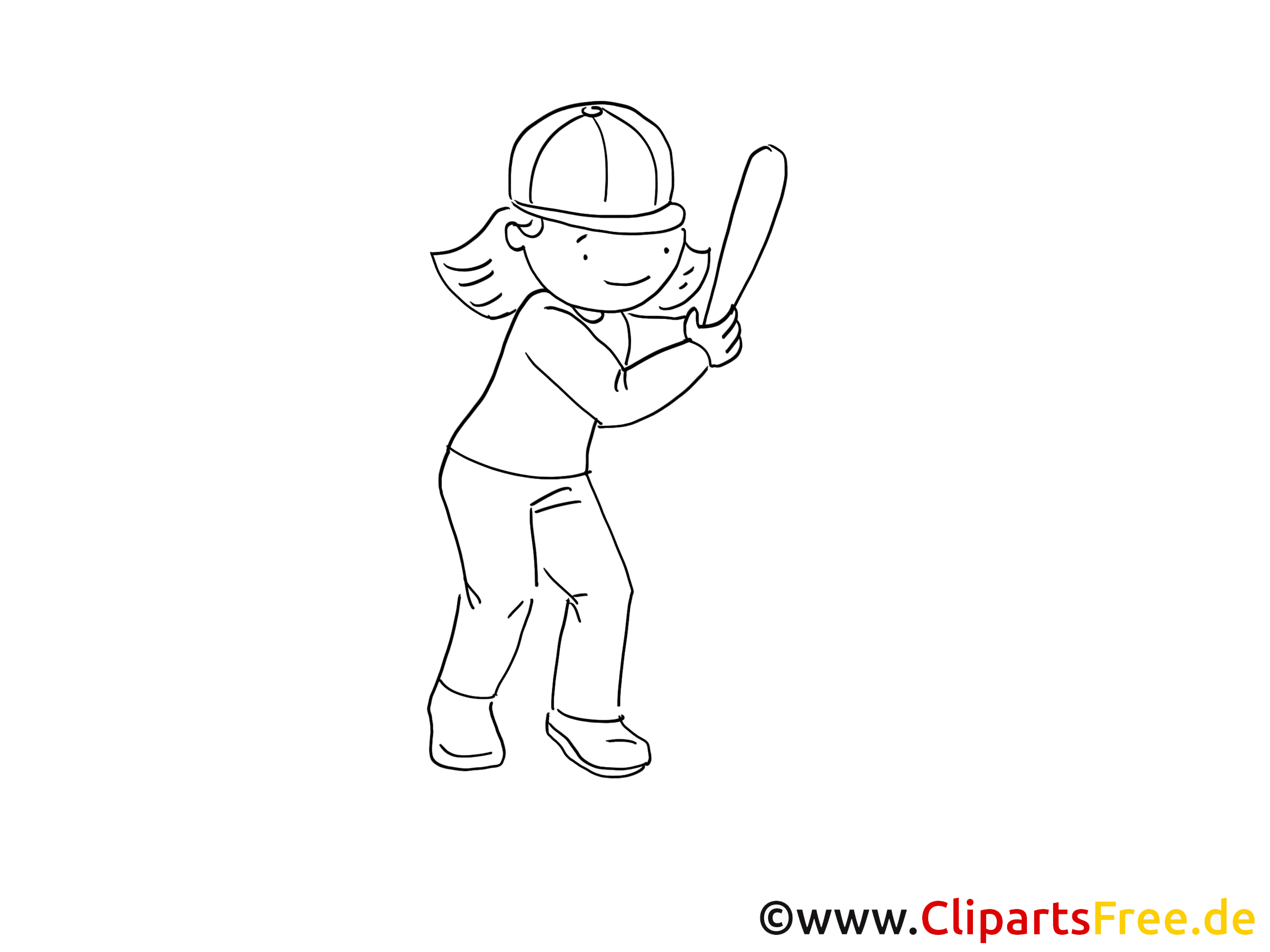 Kostenloses Ausmalbild Mädchen mit Baseballschläger als PDF