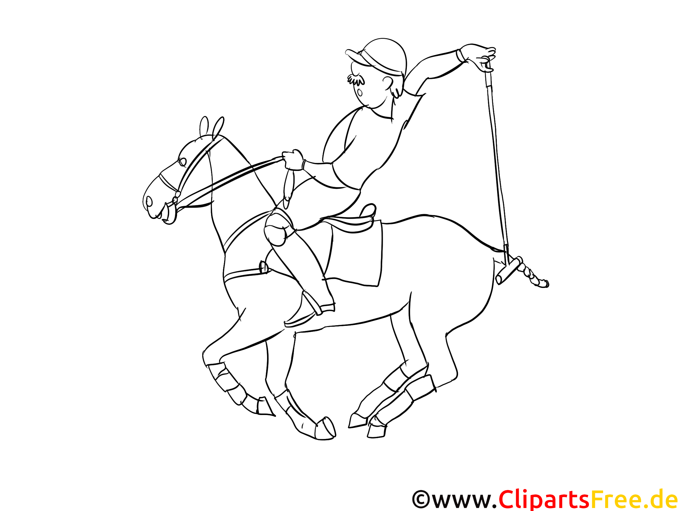 Original-Bild: Kostenloses Ausmalbild Reiter auf Pferd als PDF Malvorlage
