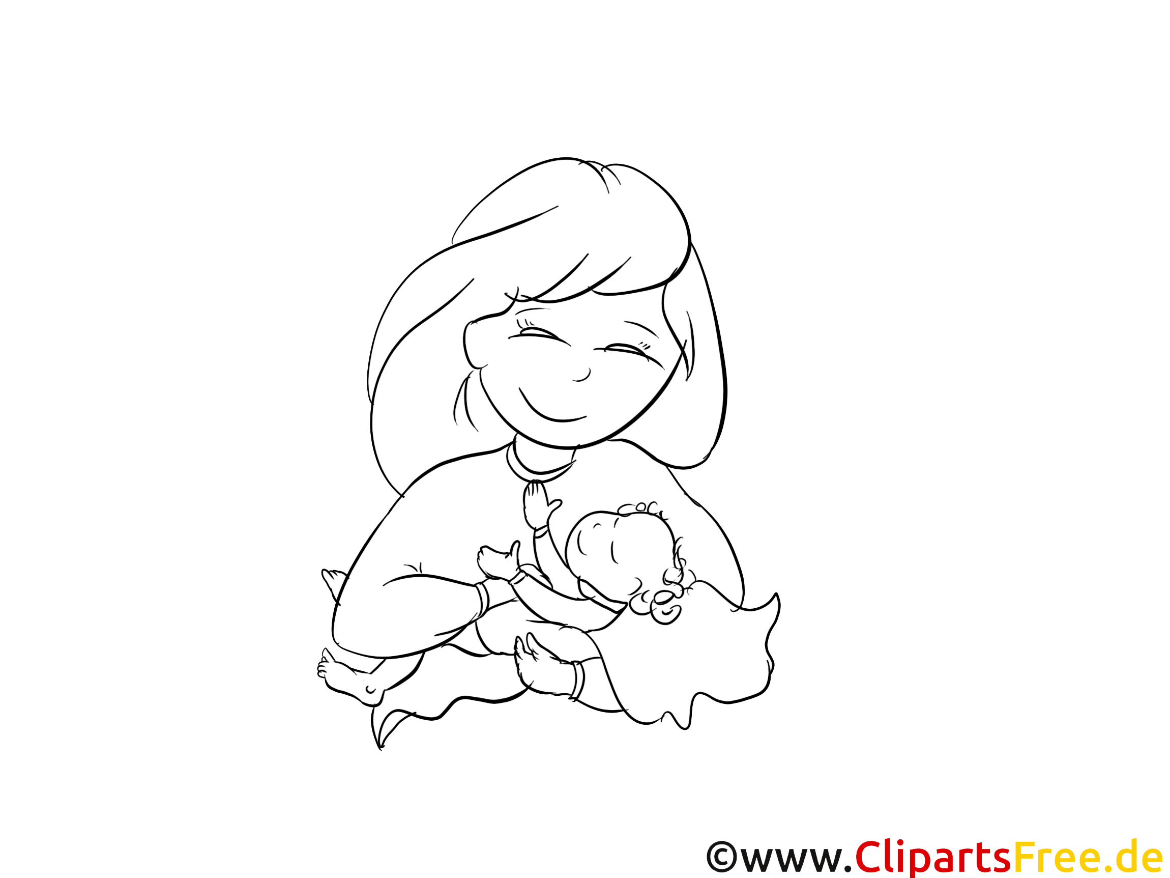 Original-Bild: Kostenloses Ausmalbild Mutter und Kind als Malvorlage im PDF