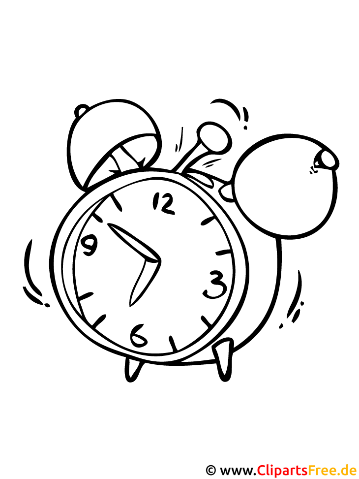 Original-Bild: Kostenloses Ausmalbild Wecker als Malvorlage im PDF-Format