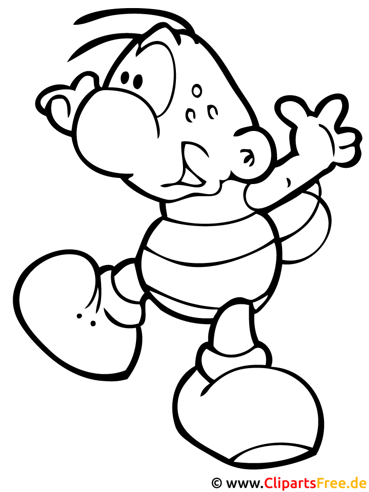 Hier haben wir ein lustiges kleines Wesen! Der Charakter hat einen breiten Kopf, große, runde Augen und einen fröhlichen Ausdruck. Er trägt ein gestreiftes Outfit—so niedlich, oder? Die Schuhe sind richtig knackig und groß, was natürlich super witzig aussieht! Man spürt regelrecht die Energie, die aus diesem Bild spricht; er wirkt bereit, die Welt zu erkunden. Vielleicht hat er gerade eine tolle Idee, was man an einem sonnigen Tag unternehmen könnte.
