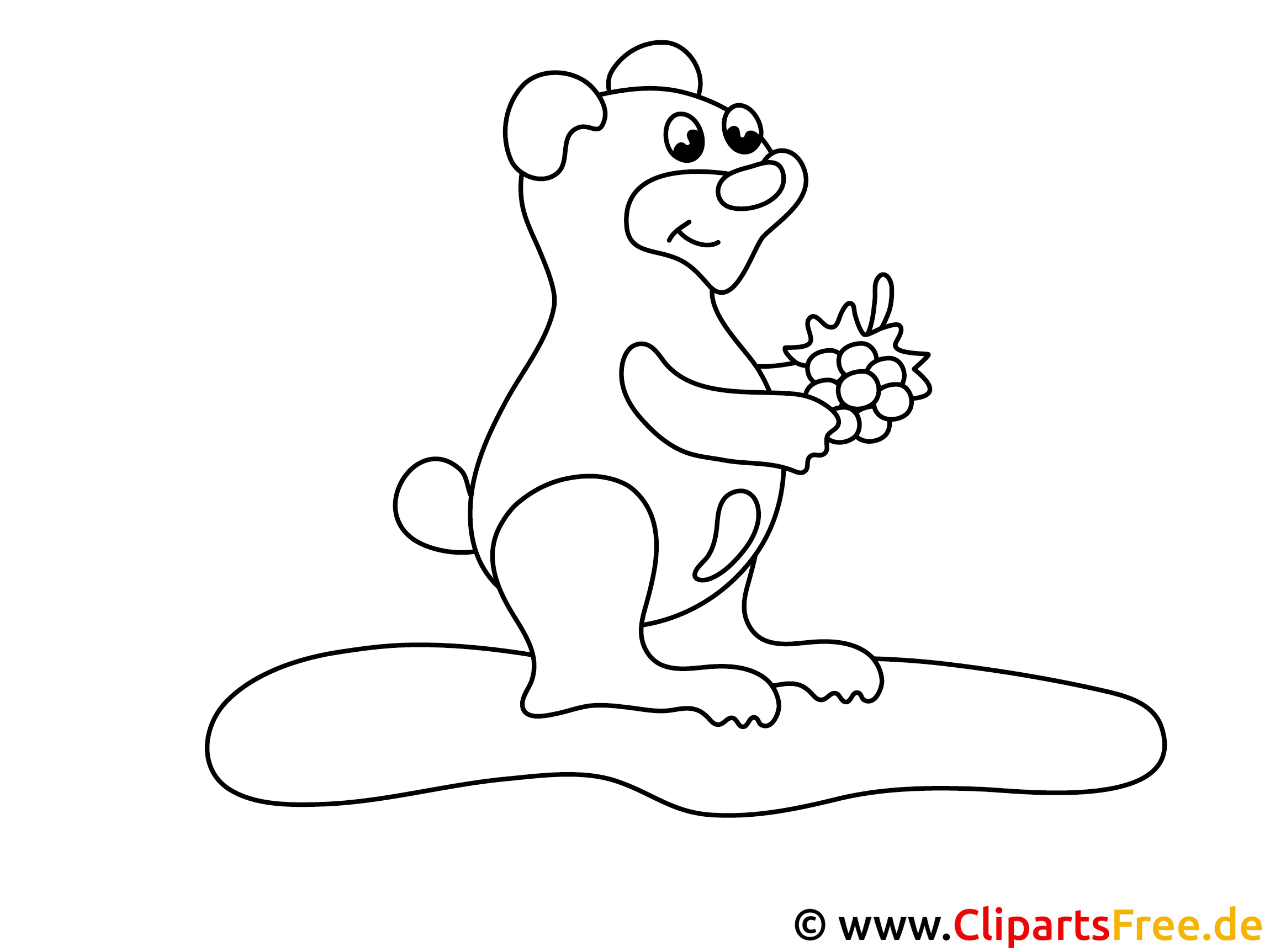 Kostenloses Ausmalbild Bär mit Beeren als PDF Malvorlage gratis