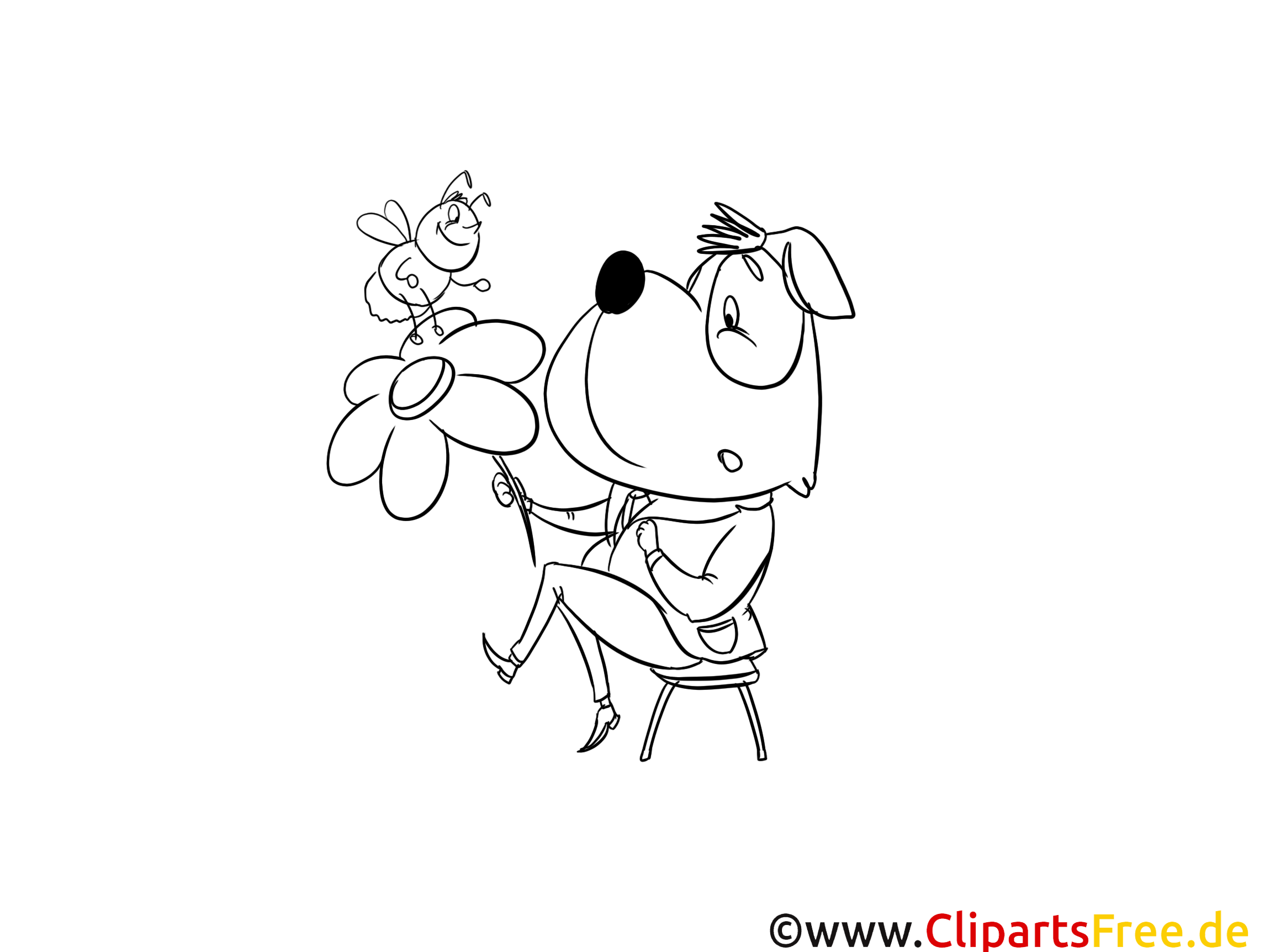 Original-Bild: Kostenloses Ausmalbild Hund und Biene als Malvorlage im PDF
