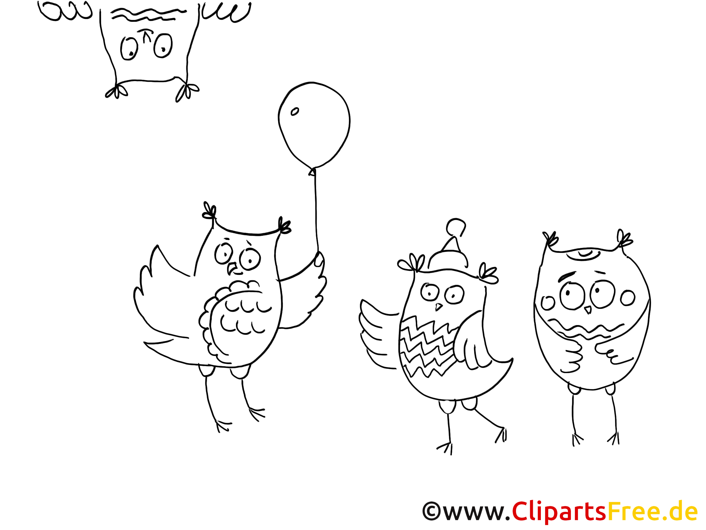 Die Malvorlage zeigt ein lustiges Treffen von Eulen – man könnte fast sagen, sie haben eine kleine Feier! Eine Eule hält ein ganz neugieriges Ballon in der Hand. Sie wirkt äußerst fröhlich und scheint richtig Spaß daran zu haben. Und die anderen Eulen, oh ja! Eine hat einen süßen Hut auf und eine andere hält sich nachdenklich die Flügel ans Gesicht. Ja, wirklich, die ganze Szene strahlt fröhliche Stimmung aus. Mit ihren großen, runden Augen wirken sie einfach nur niedlich. Ein tolles Motiv, um Kinder kreativ werden zu lassen!