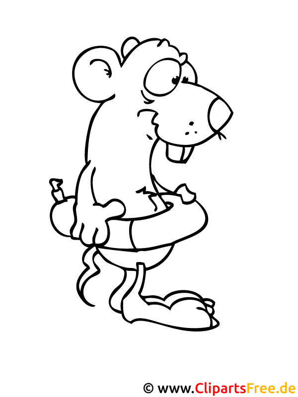 Kostenloses Ausmalbild Maus im Schwimmreifen als PDF Malvorlage