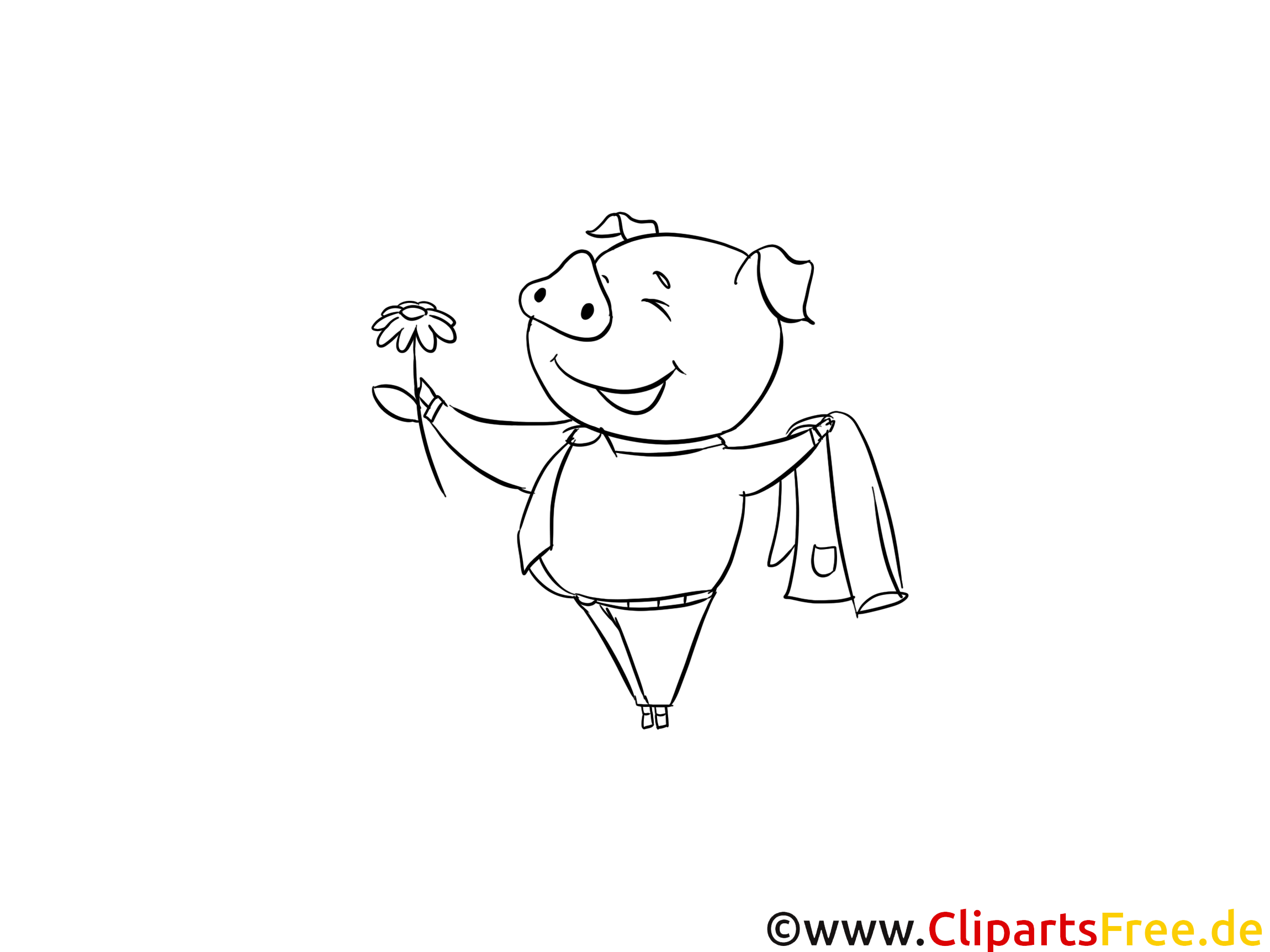 Kostenloses Ausmalbild Schweinchen mit Blume im PDF-Format