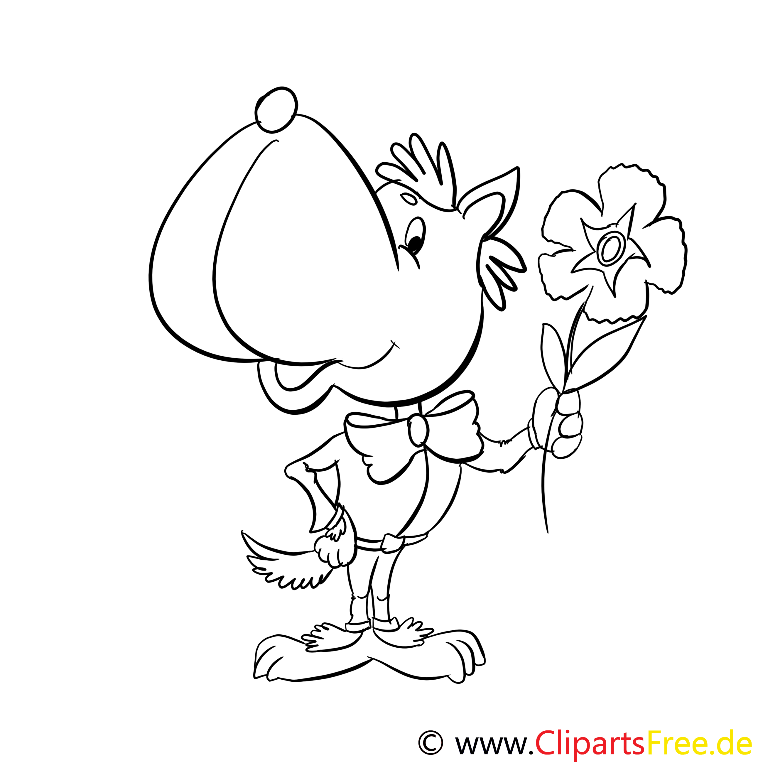 Vorschau-Bild: Kostenloses Ausmalbild Hund mit Blume als Malvorlage im PDF