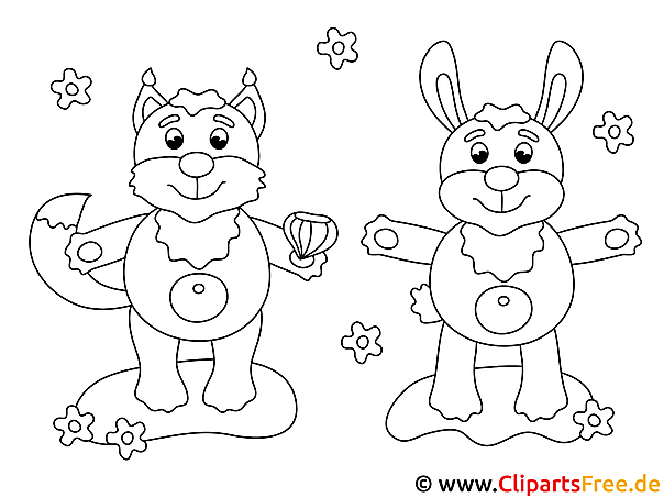 Kostenloses Ausmalbild Fuchs und Hase als Malvorlage im PDF