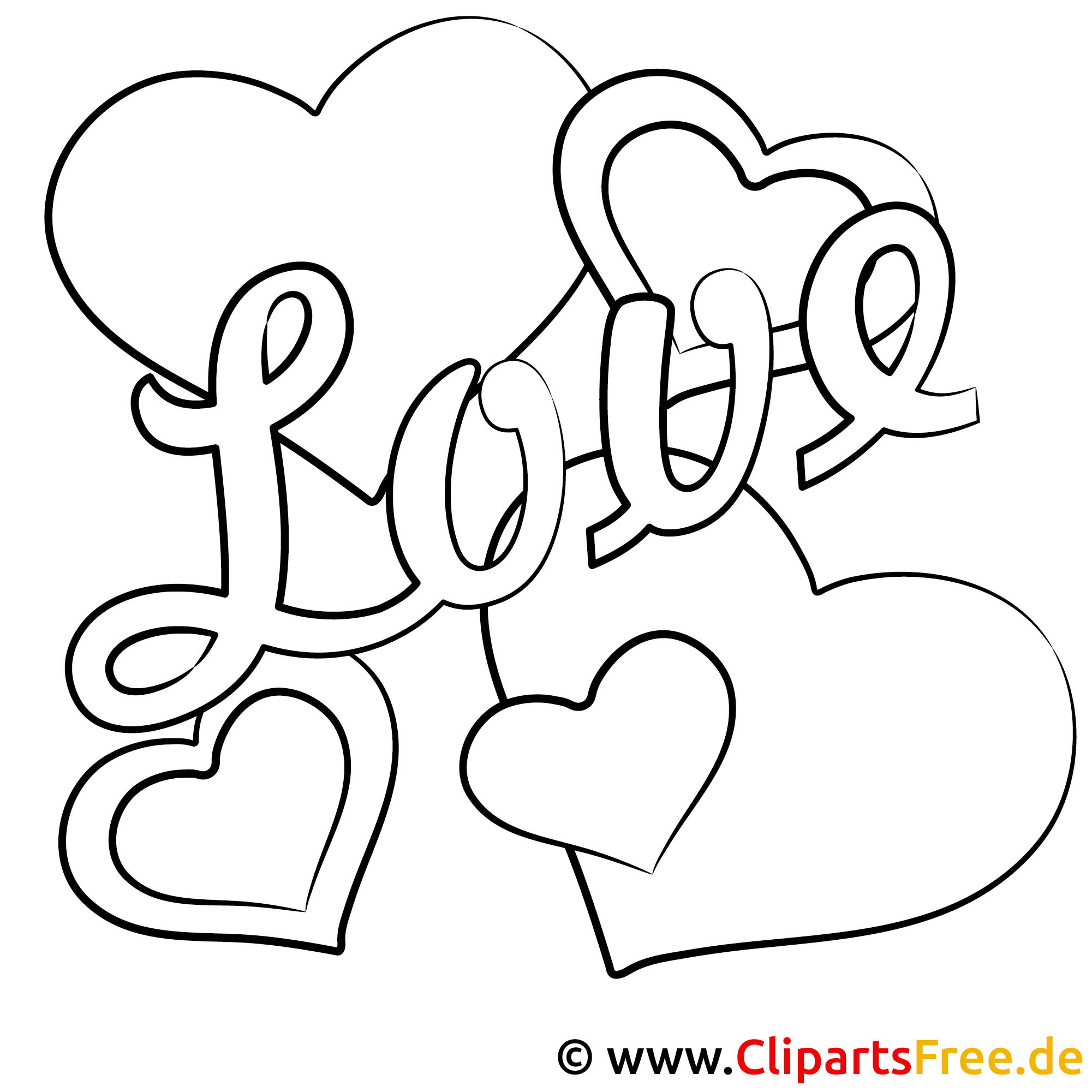 Original-Bild: Kostenloses Ausmalbild mit Herzen und Love-Malvorlage im PDF