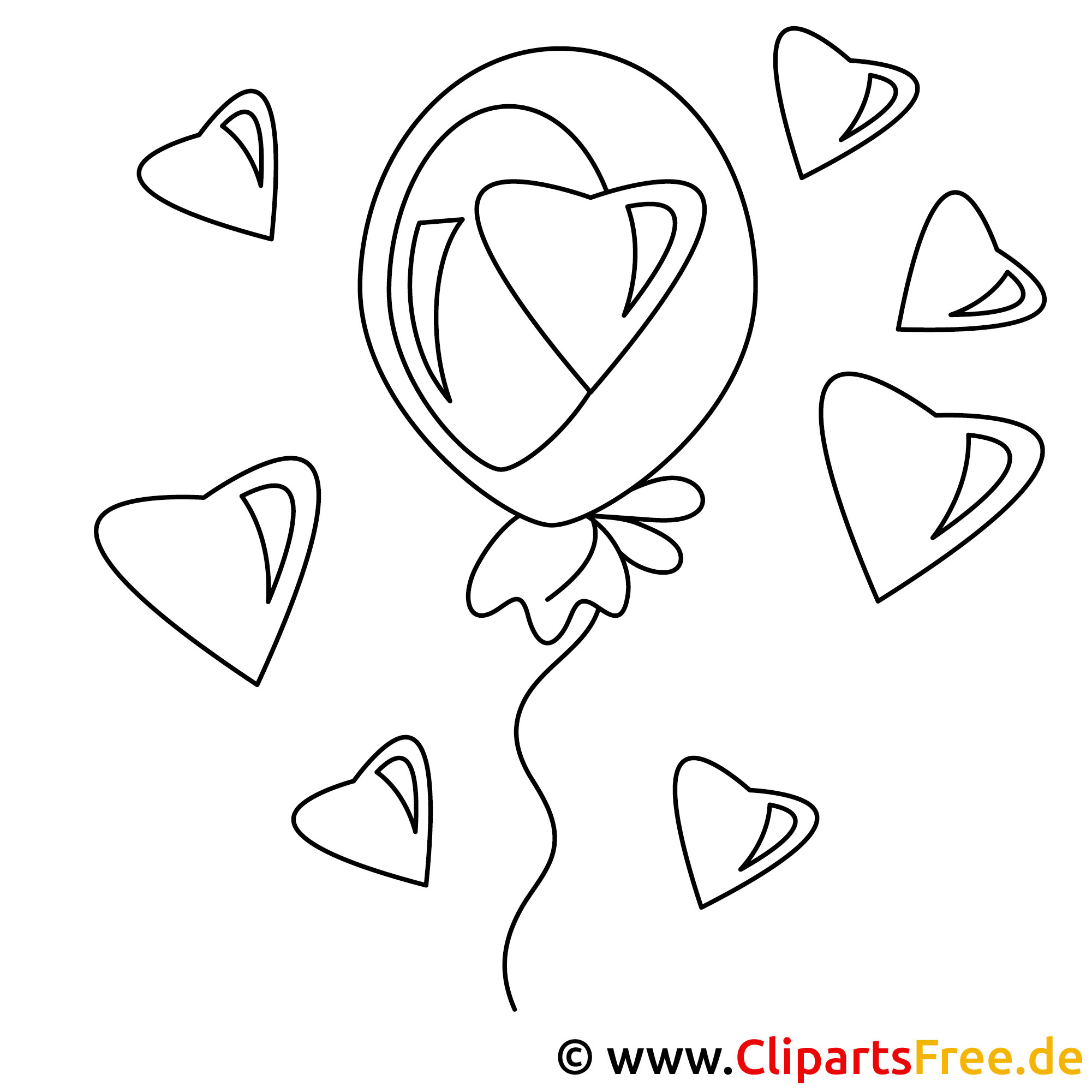 Kostenloses Ausmalbild Ballon mit Herzen als PDF Malvorlage