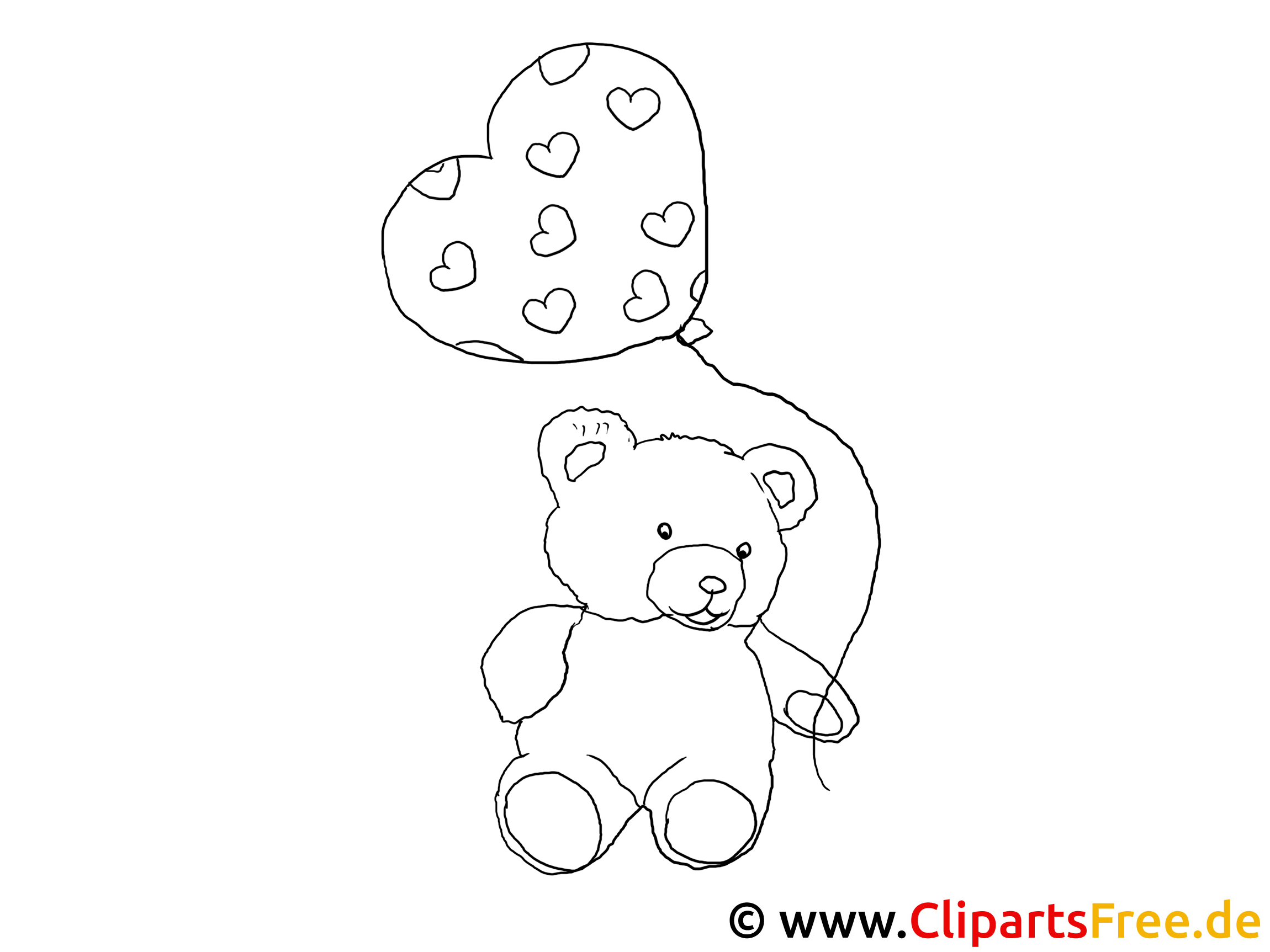 Kostenloses Ausmalbild Teddy mit Herzballon als PDF Malvorlage