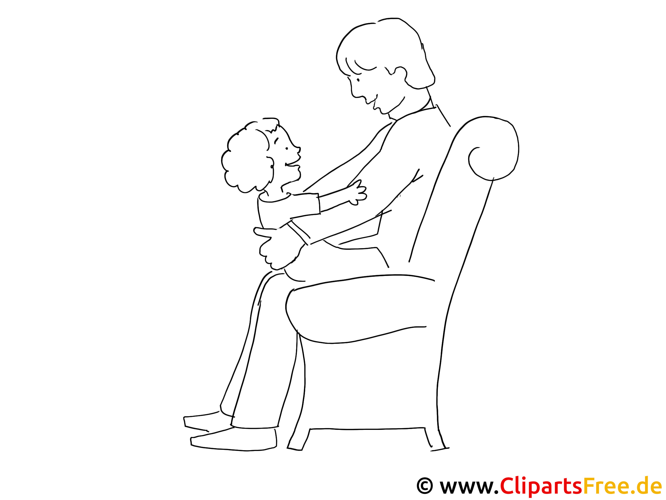 Kostenfreies Ausmalbild PDF für Kinder: Papa und Kind Malvorlage