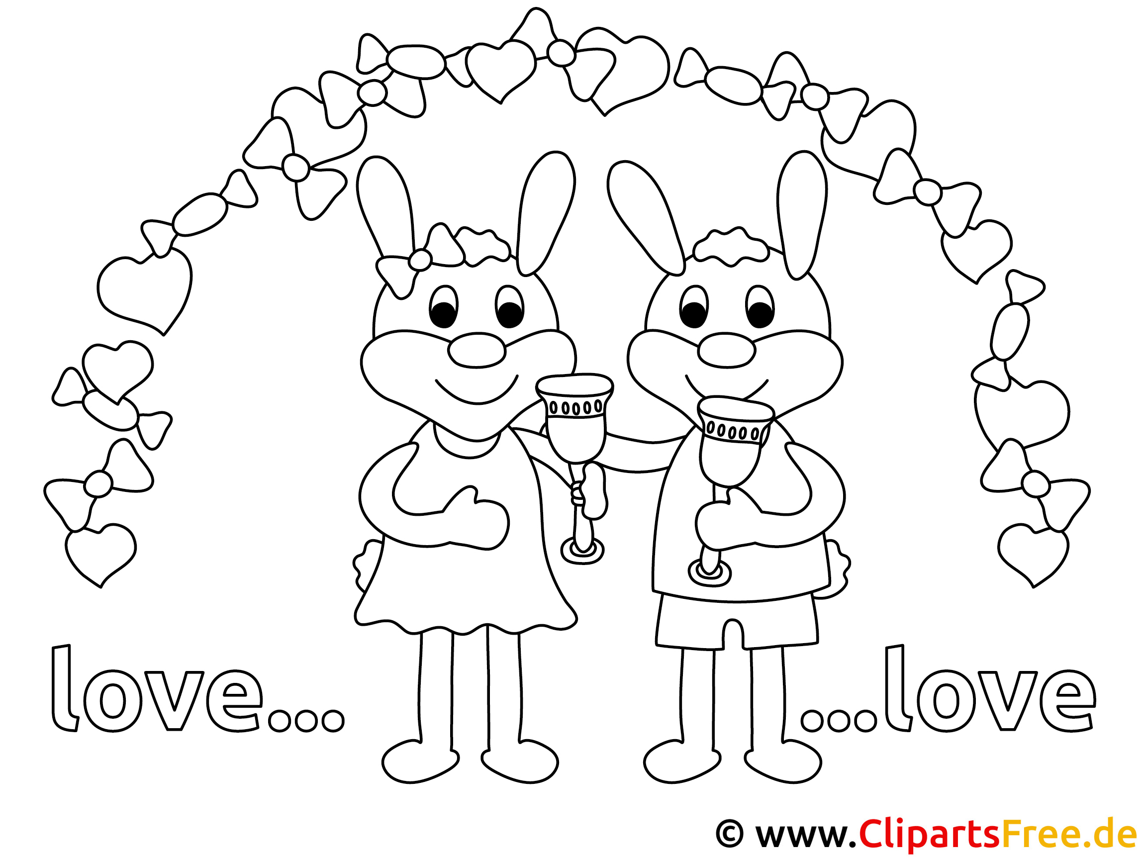 Verlobte Tiere Ausmalbild für Kinder kostenlos ausdrucken