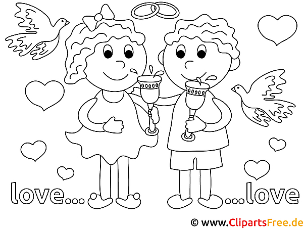 Hier haben wir ein ganz zauberhaftes Ausmalbild, das ein fröhliches Pärchen zeigt. Sie feiern, wahrscheinlich den Valentinstag oder einen anderen besonderen Moment! Die beiden stehen mit Gläsern in der Hand und lächeln sich strahlend an. Im Hintergrund sind süße Tauben und Herzen, die die schöne Stimmung noch unterstreichen. Besonders die Details, wie die Ringe über den Köpfen, setzen dem Ganzen die Krone auf. Diese Malvorlage ist wie dafür gemacht, um jeder Feier etwas Farbe und Freude zu verleihen!