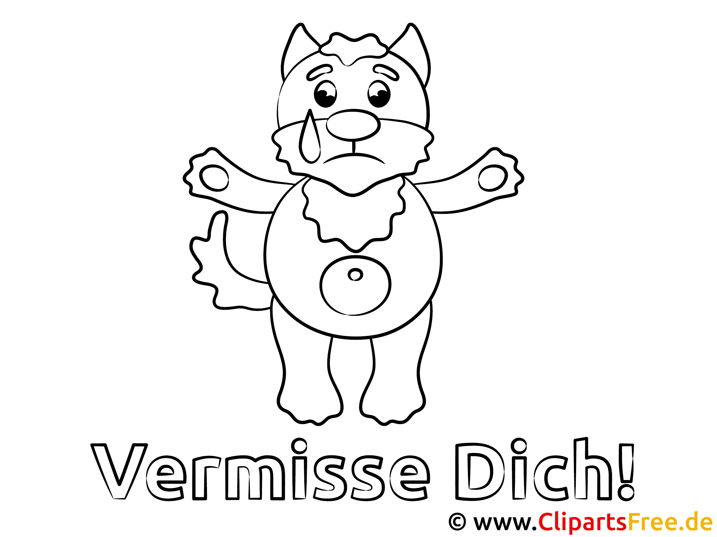 In diesem süßen Ausmalbild siehst du einen niedlichen Hund, der ganz traurig schaut. Er hat große, runde Augen, und, oh je, eine kleine Träne läuft ihm über die Wange. Unter ihm steht in dicken, freundlichen Buchstaben „Vermisse Dich!“. Man spürt richtig, wie sehr er jemanden braucht. Vielleicht ist das dein bester Freund oder ein geliebtes Familienmitglied, das gerade nicht da ist. Die Kombination aus dem Putzigen und dem Traurigen macht dieses Bild so besonders, richtig einladend zum Ausmalen! Mit vielen Farben kann man ihm gleich ein Lächeln ins Gesicht zaubern.
