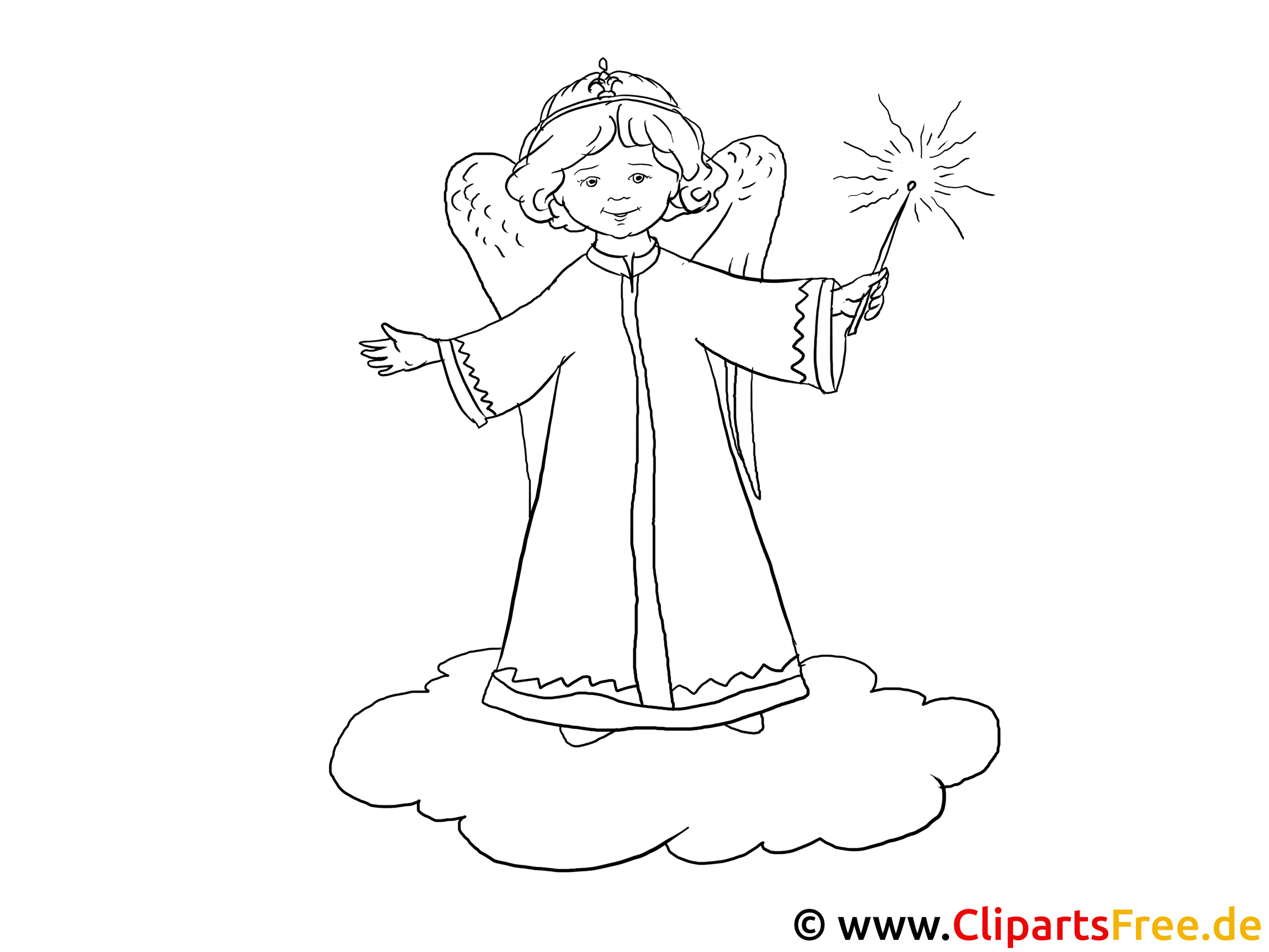 In dieser fröhlichen Malvorlage sehen wir einen kleinen Engel, der auf einer fluffigen Wolke steht. Die Figur hat schicke, geschwungene Flügel, die, na ja, schon fast zum Fliegen einladen. Auch die Frisur des Engels—so niedlich und leicht gewellt—bringt ein Lächeln ins Gesicht. In der einen Hand hält er einen Zauberstab, der, ehrlich gesagt, richtig magisch wirkt. Mit einem freundlich-glücklichen Ausdruck scheint dieser Engel gerade etwas Wundervolles zu verkünden oder vielleicht sogar Wünsche zu erfüllen! Das Bild ist besonders vielseitig und eignet sich perfekt zum Ausmalen.