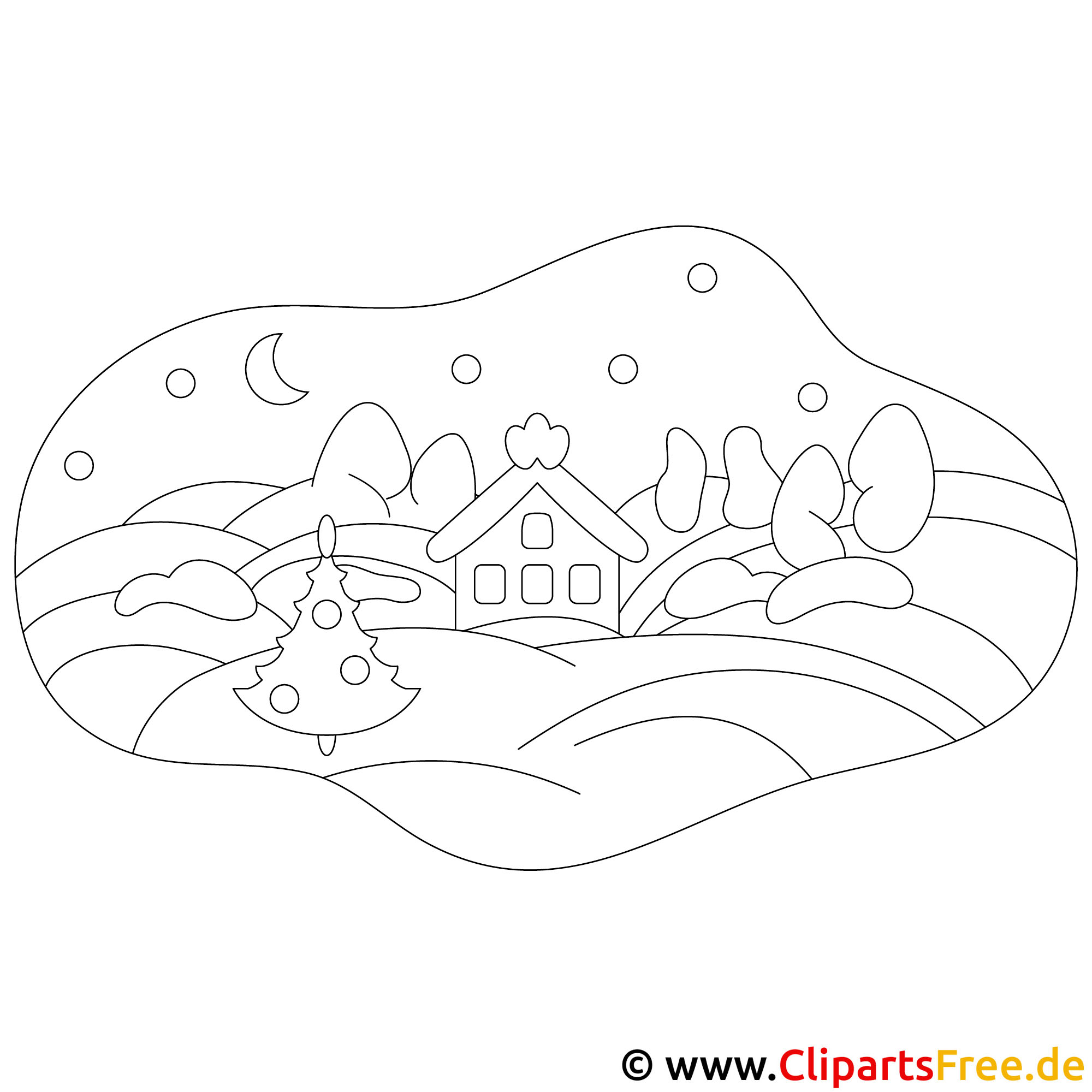 Vorschau-Bild: Dorf im Winterschlaf - Weihnachtsbilder zum Ausmalen