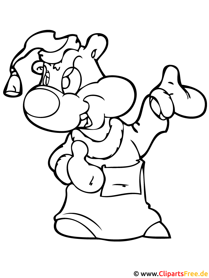 Auf dieser tollen Malvorlage sieht man eine bunte Figur, die irgendwie knuffig wirkt. Die Figur hat ein großes, rundes Gesicht mit einer offenen Mundhaltung, die ein freundliches Lächeln zeigt. Ein bisschen schräg, oder? Ach ja, das ist ein ganz klar erkennbarer Charakter, der mit seiner großen Mütze und dem lockeren Outfit im Schlafanzug lustig daherkommt. Dazu die großen Augen – man könnte fast sagen, sie funkeln! Und die Hände, da hat er eine ganz witzige Geste gemacht, die wirklich neugierig macht, was er wohl gerade von uns will.