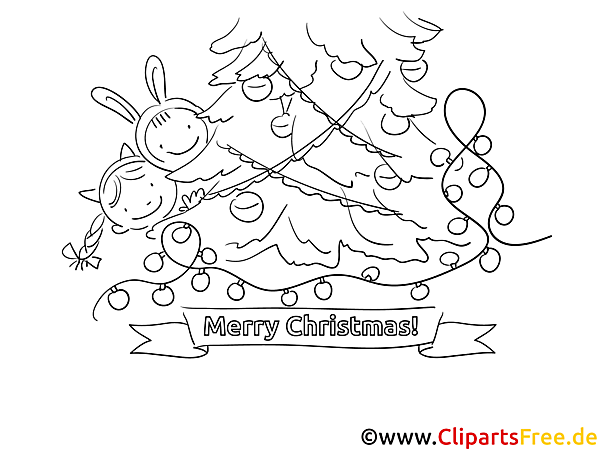 Schau dir dieses fröhliche Ausmalbild an! Es zeigt zwei Kinder, die voller Freude einen Weihnachtsbaum schmücken. Der große, grüne Baum hat viele schöne Kugeln, die glitzern und funkeln! Die Kinder strahlen vor Freude, besonders das Mädchen mit dem Zopf und der kleine Junge mit den Hasenohren. Gleichzeitig gibt es eine hübsche Girlande, die um den Baum gewickelt ist. Und nicht zu vergessen, das große Banner, auf dem „Merry Christmas!“ steht. Eine super schöne Szenerie, nicht wahr?