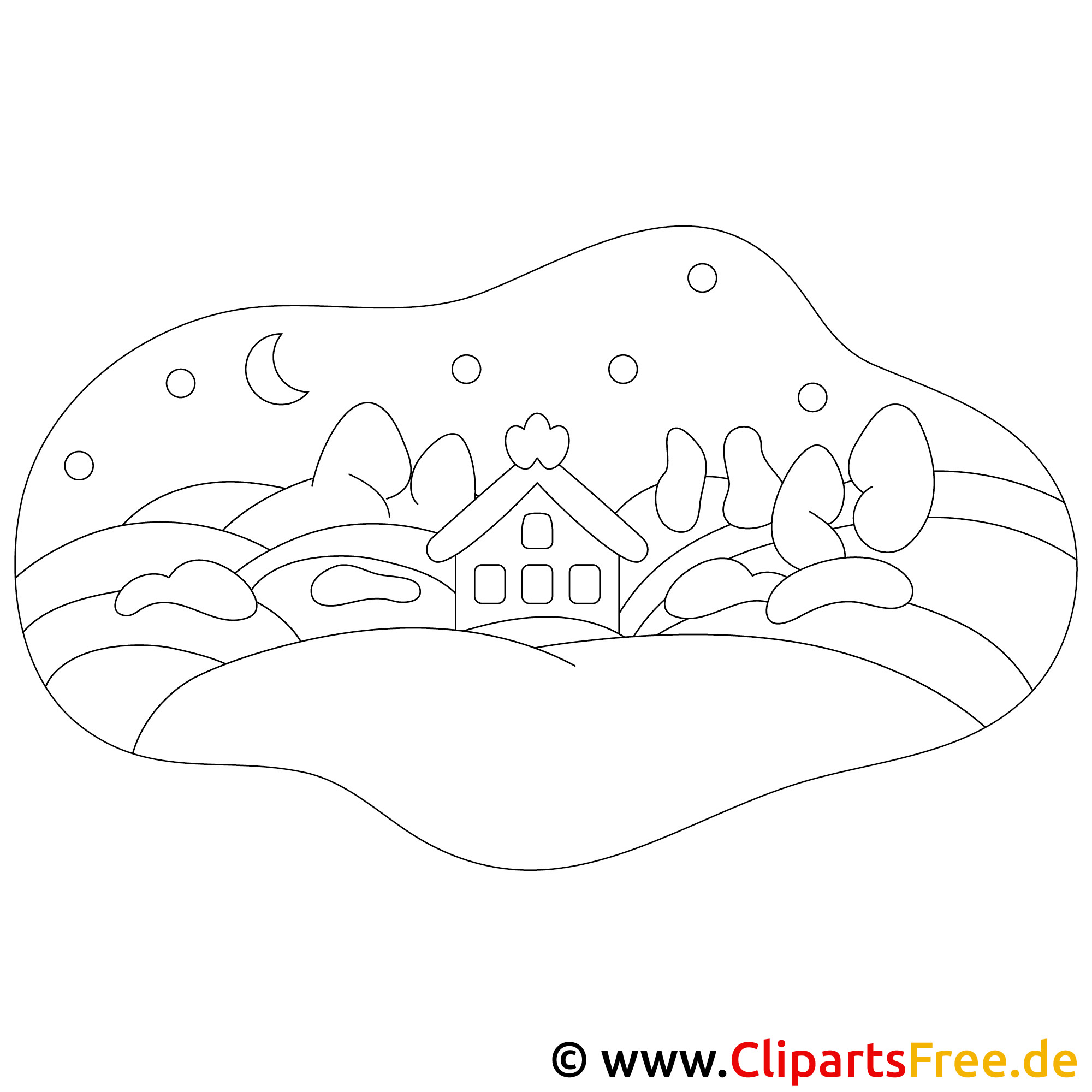 Vorschau-Bild: Winter im Dorf Malvorlage kostenlos