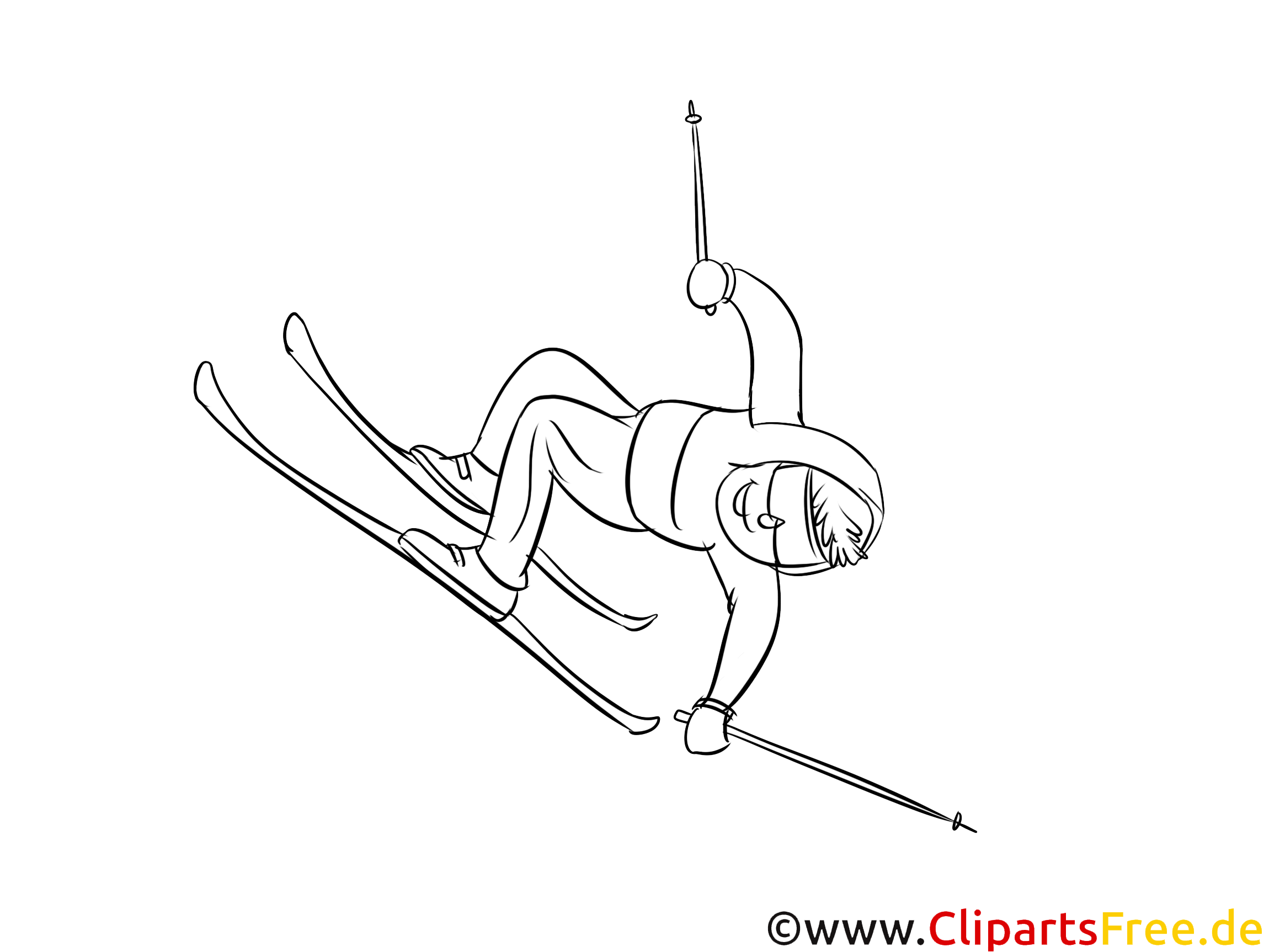 Auf diesem Ausmalbild sieht man einen fröhlichen Skifahrer, der mit viel Schwung den Hang hinunter saust. Mit geschickten Bewegungen und einer leichten Neigung des Körpers zeigt er seine Begeisterung für den Wintersport. Die enthaltenen Details, wie zum Beispiel seine farbenfrohe Skijacke und die stylischen Skistöcke, lassen viel Raum für kreative Gestaltung. Die schneebedeckte Landschaft im Hintergrund ist ideal zum Ausmalen – hier kann man mit verschiedenen Weiß- und Blautönen spielen und schöne winterliche Szenen schaffen.