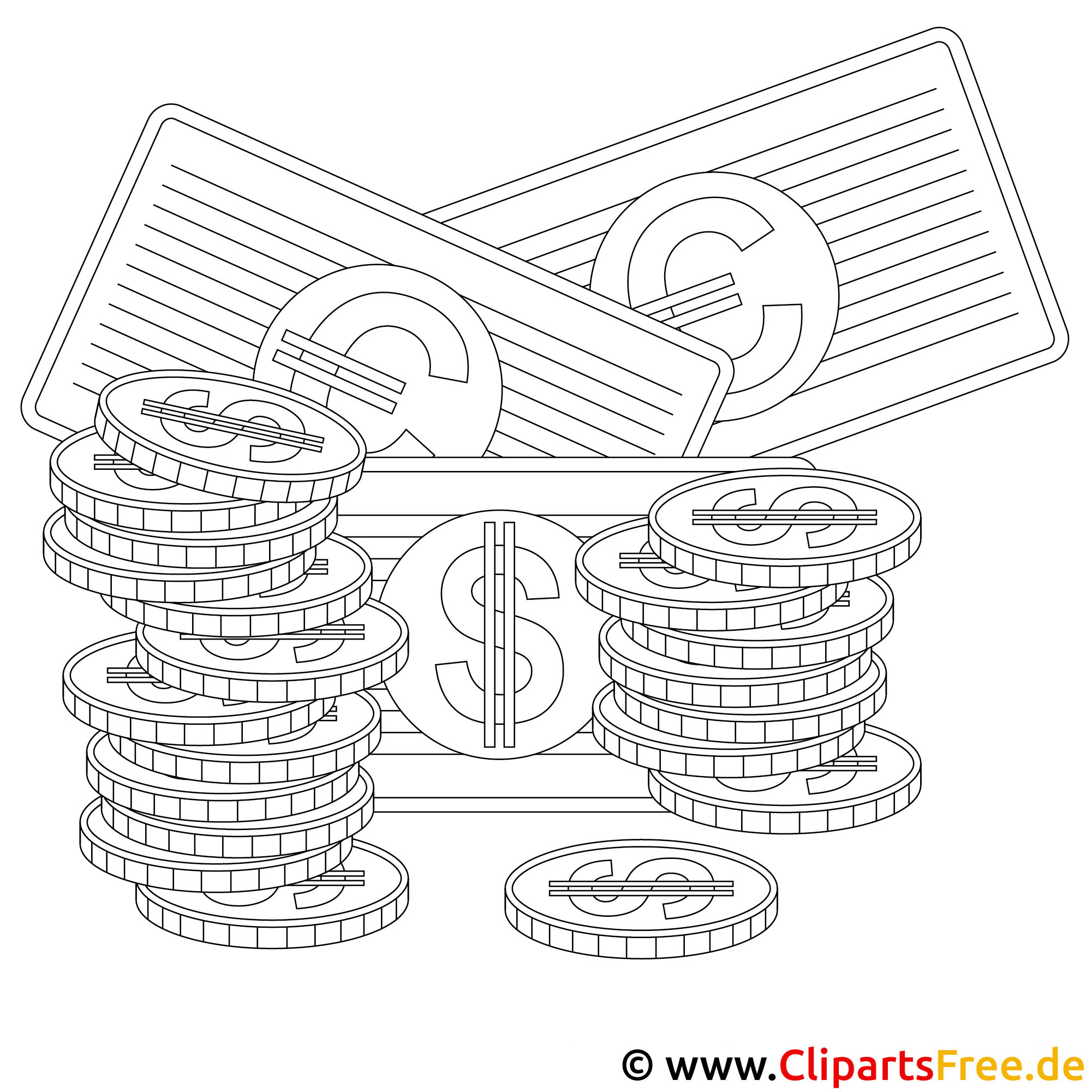 In diesem motivierenden Malbild dreht sich alles um Geld! Ja, genau, um Münzen und Scheine. Man sieht einen Stapel von glänzenden Münzen, die ordentlich übereinander liegen. Darauf ein paar Geldscheine, die mit dem bekannten Dollarzeichen versehen sind. Es gibt auch Münzen, die genau gleich aussehen – wie ein kleines Geldosel, fast schon wie im Spiel! Dieses Bild lädt dazu ein, kreativ zu sein, denn wer würde nicht gerne mit Farben experimentieren?